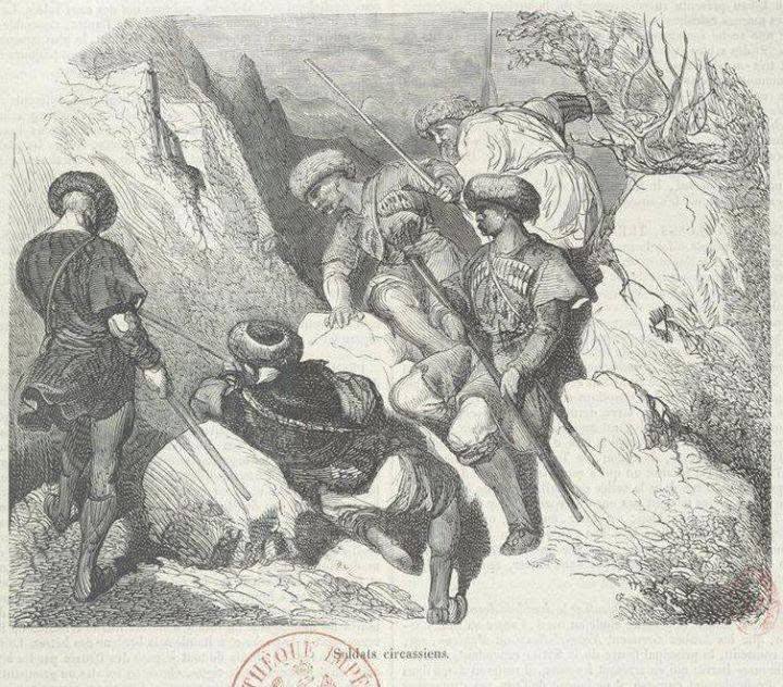 "При приближении экспедиции жители соседних гор, встревоженные видом войск, направили депутацию, чтобы узнать о цели этих военных приготовлений. Первыми представились карачаевцы, сопровождаемые их муллой...[Жан-Шарль де Бесс , «Путешествие в Крым, на Кавказ, в Грузию, Армению, Малую Азию и Константинополь в 1829–1830 гг.»]