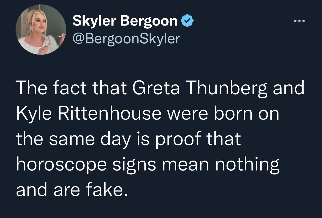 Тот факт, что Грета Тунберг и Кайл Риттенхаус родились в один день, является доказательством того, что знаки гороскопа ничего не значат и являются подделкой.