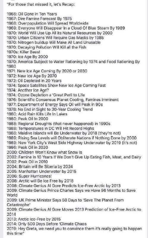 Напоминалка о несбывшихся прогнозах алармистов всех мастей за последние полвека Именно они во многом породили политический хаос в некогда цивилизованном мире и привели к захвату своих стран леваками и варварами из стран третьего мира. Если Трамп чудом…