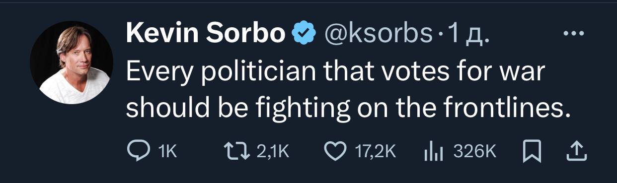 ​​Каждый политик, который голосует за войну, должен сражаться на передовой.