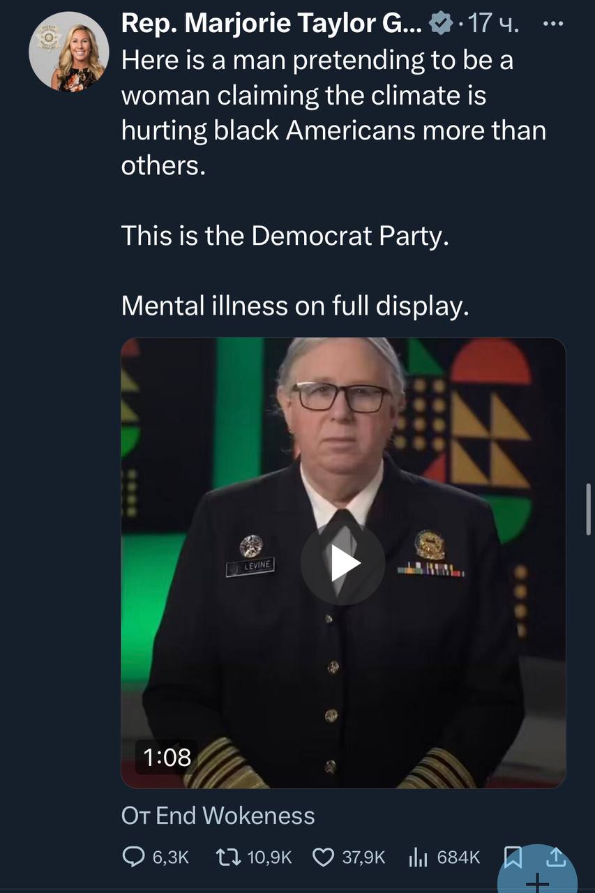 ​​Вот мужчина, притворяющийся женщиной, утверждающий, что климат вредит чернокожим американцам больше, чем другим.