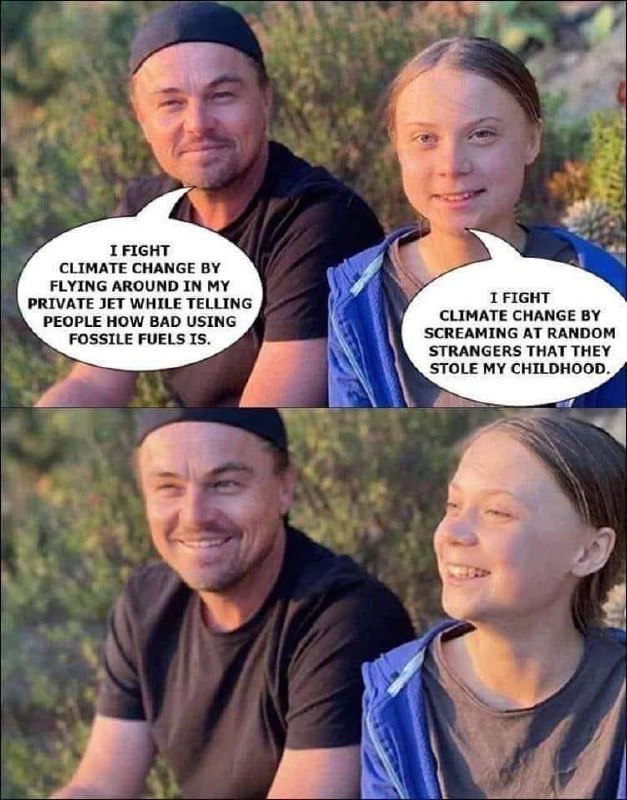 - Я борюсь с изменением климата, летая на своем частном самолете и рассказывая людям, как плохо использовать ископаемое топливо
