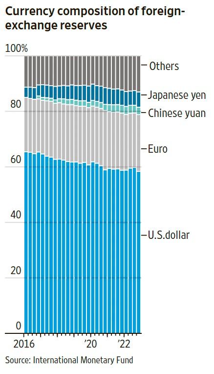 В ближайшие 10 лет доля USD в международных резервах может потерять еще 5-10%, но он все равно еще долгое время будет оставаться ведущей резервной валютой.