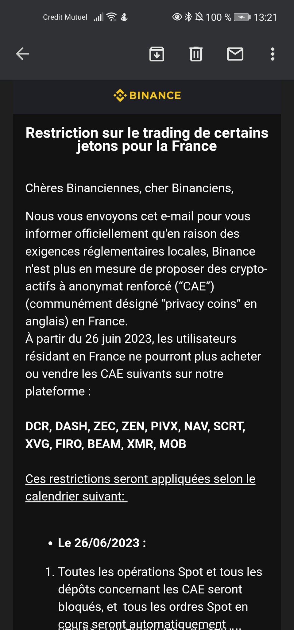 🔸 Binance удалит 12 анонимных криптовалют для пользователей из Франции, Италии, Польши и Испании