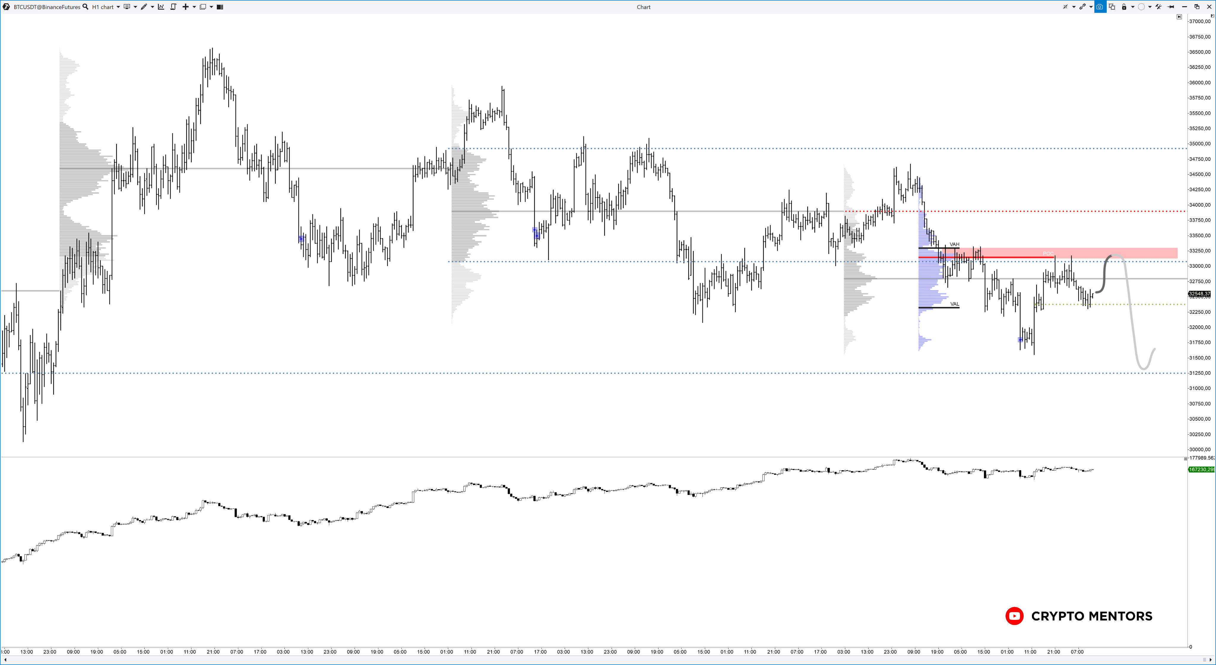 ▫️ Если рассматривать более локальную ситуацию, то мы закрепились ниже зоны стоимости прошлой недели, что указывает на доминацию продаж. В связи с этим основным сопротивлением выступает $33 900.