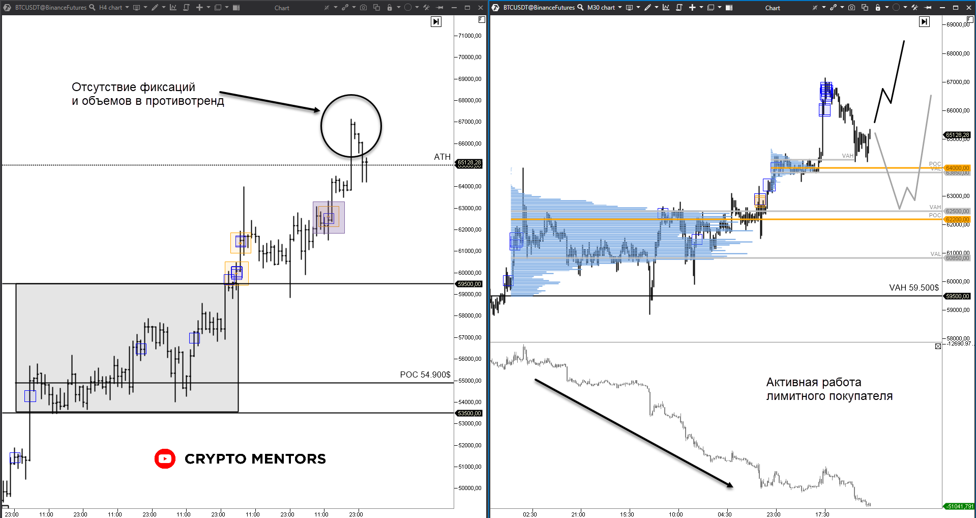 ▫️ На пробое мы не увидели никаких аномалий: нет объемный фиксаций, нет вспышки по дельте (покупателей, пойманный в ловушку), поэтому даже тот факт, что мы сейчас под ATH не позволяет говорить нам о ложном пробое.