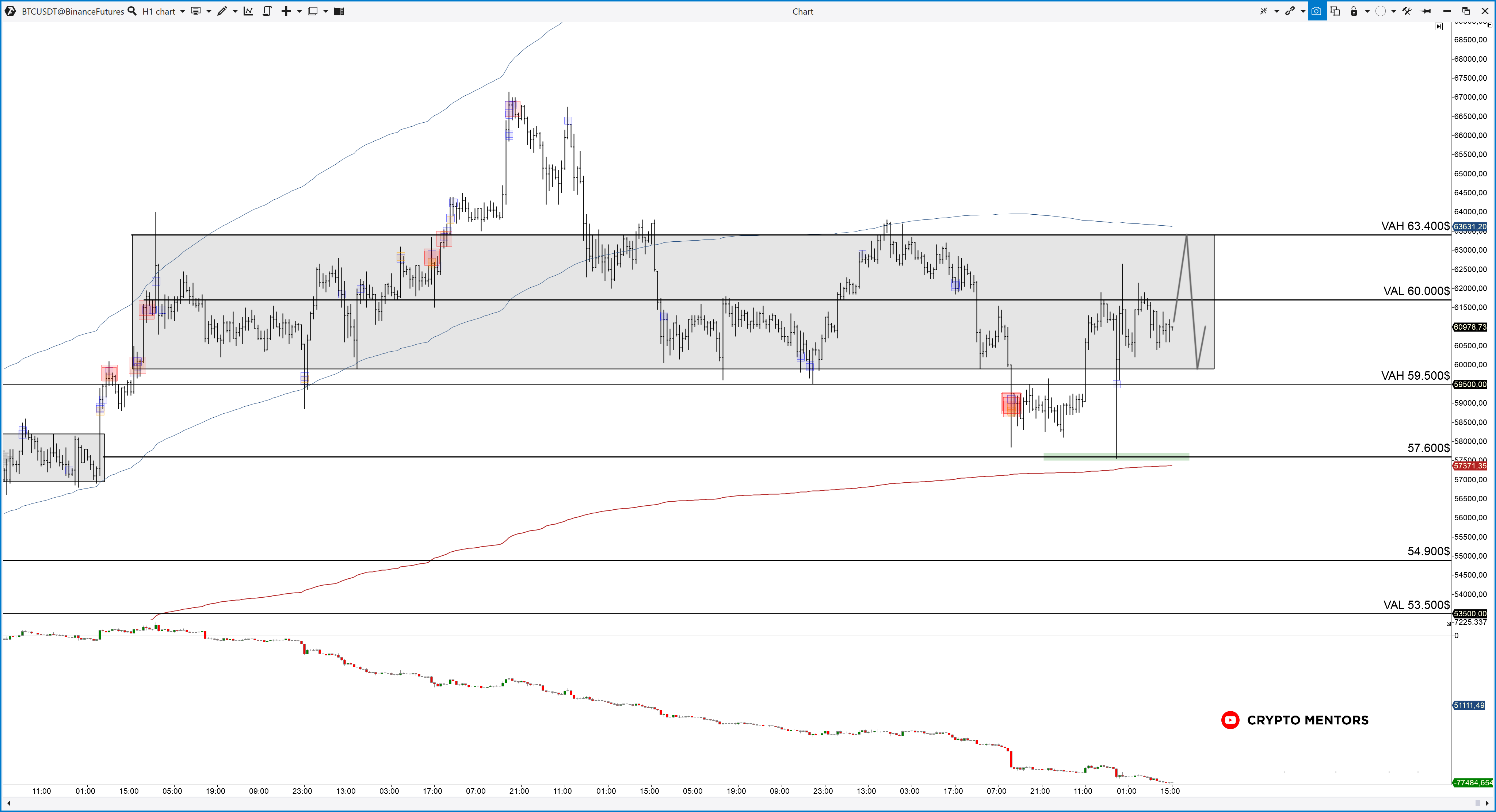 От подобных формаций ожидания на тест $59 500, продолжения ротаций в пределах выделенного диапазона от границ до границ и затем выход выше. Преодоление $67 150 просматривается уже вполне явно.