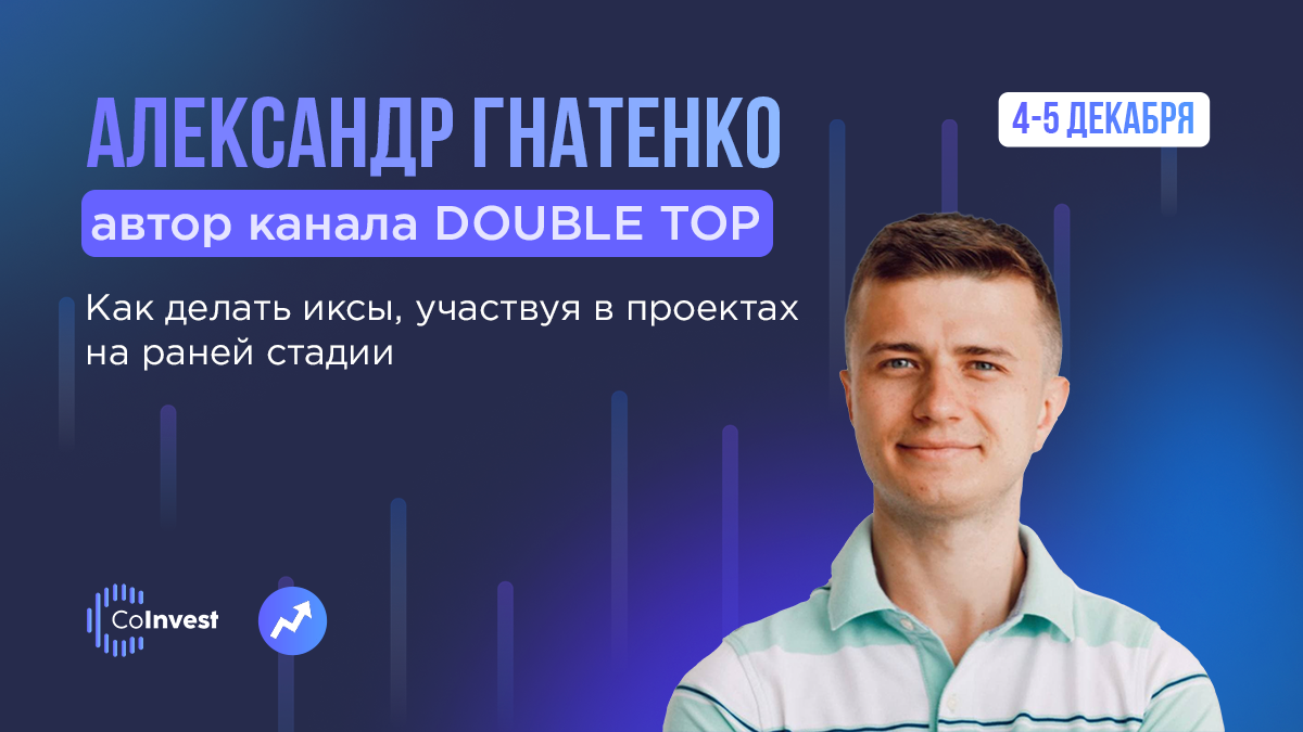 4-5 декабря на онлайн-конференции CoInvest выступит co-founder проекта DOUBLE TOP Александр Гнатенко. Он вместе с командой единомышленников принял участие в 100 токенсейлах и научился находить и заходить в прибыльные проекты 💰