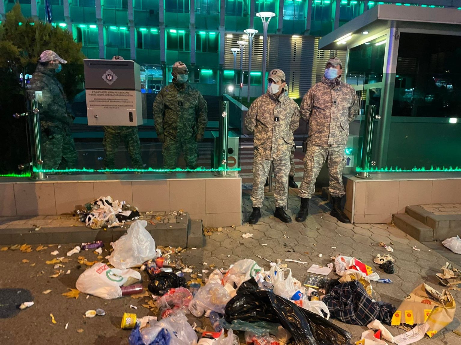 В Грузии оппозиционеры в знак протеста рабросали мусор у главного офиса СГБ.