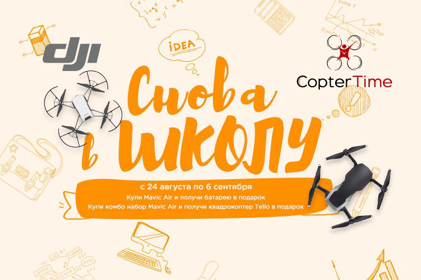 Сегодня финальный день акции купи квадрокоптер DJI Mavic Air и получи подарок. При покупке Mavic Air не комбо в подарок вы получаете аккумулятор. При покупке Mavic Air в комплектации комбо вы получаете в подарок квадрокоптер Tello.