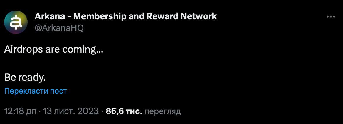 Arkana - интересный проект с инвестициями и гуд идеей, который ко всему тоже подтвердил ближайший аирдроп.
