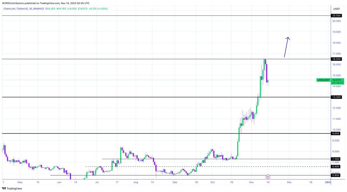 $LINK closed bearish and it can decline further from here. A bullish move above $16.50 will offer a long towards $20.50 and higher. My focus will be on the intraday chart to get a quick scalp.