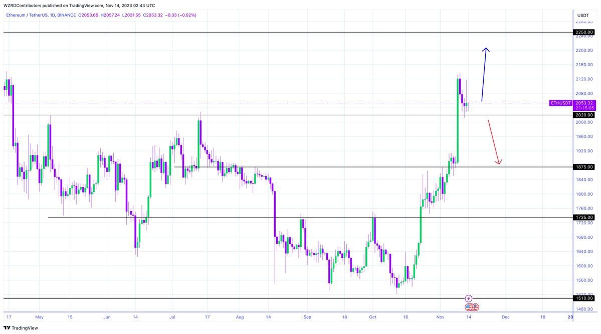 $ETH closed bearish as Bitcoin is leading the sentiment. We need to wait for a healthy candle to get the confirmation below $2,020. I'll carefully monitor the intraday chart to get the next scalp.