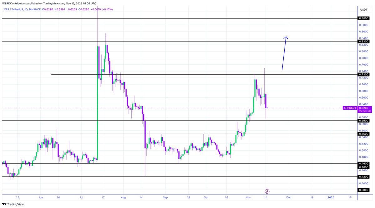 XRP tested $0.5900 as a support and closed indecisively. We should see a further bullish move from here unless Bitcoin shows more weakness. My focus will be on the intraday chart tomorrow to get a quick scalp.