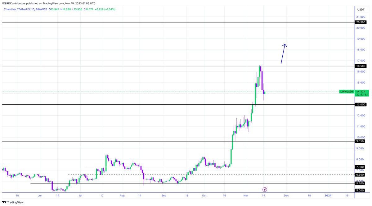 $LINK closed indecisively today. It can move in either direction tomorrow. A bullish move above $16.50 will make LINK bullish. My focus will be on the intraday chart tomorrow to get a quick scalp.