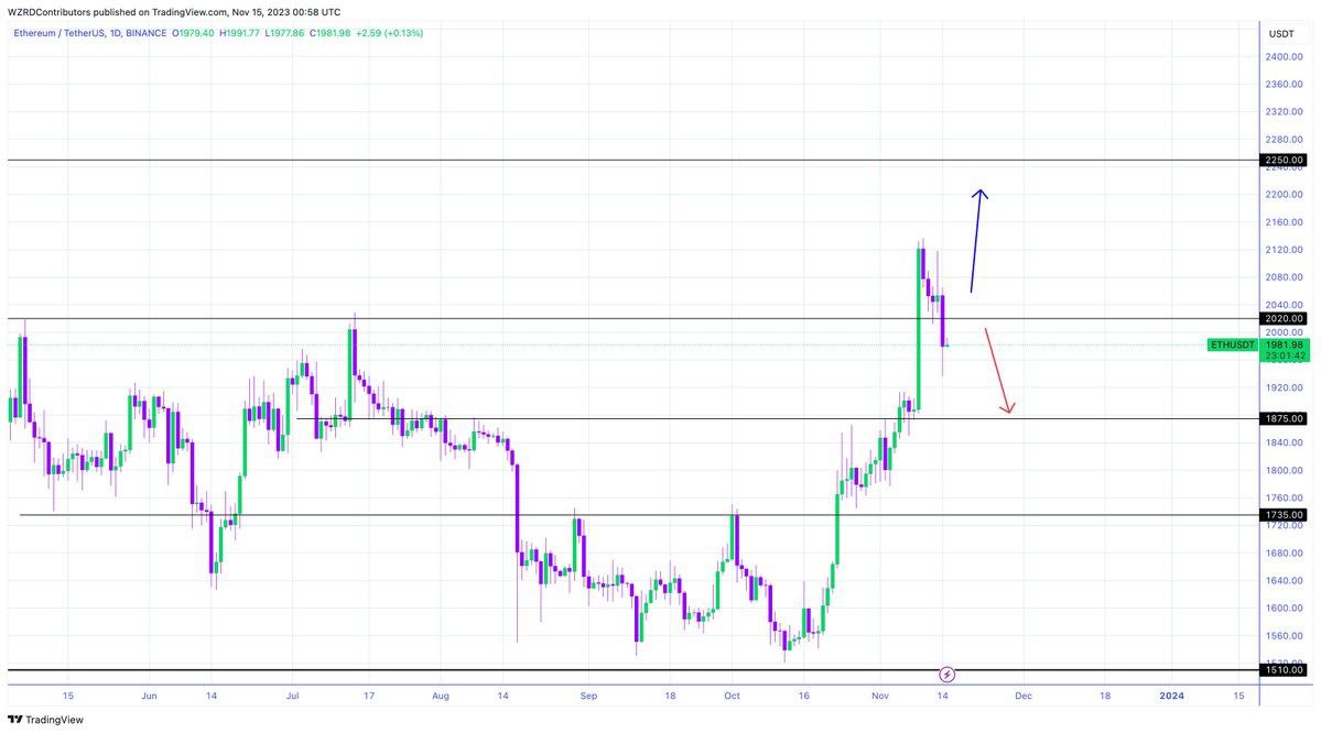 $ETH closed bearish as Bitcoin is leading the sentiment. We need to wait for a healthy candle to get the confirmation below $2,020. I'll carefully monitor the intraday chart to get the next scalp.