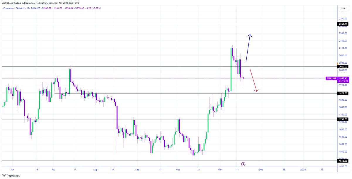 $ETH closed indecisively today. A bullish breakout above $2,020 will offer the next bullish rally in Ethereum. I’ll carefully monitor the intraday chart to get a scalp tomorrow.