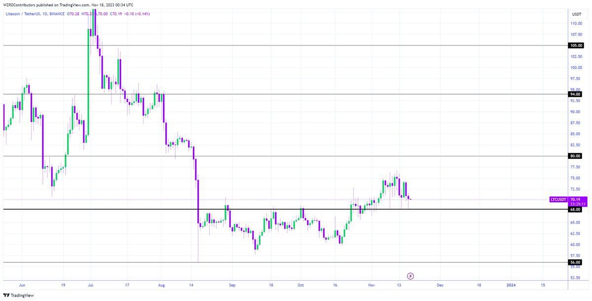 $LTC re-tested $68.00 as a support and we need to wait for more healthy candles to get the next lead towards $80.00. My focus will be on the intraday chart formation tomorrow to get a scalp.