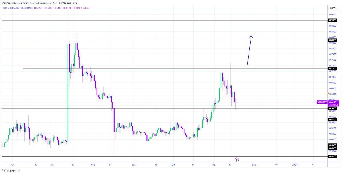 XRP tested $0.5900 as a support and closed indecisively. We should see a further bullish move from here unless Bitcoin shows more weakness. My focus will be on the intraday chart tomorrow to get a quick scalp.