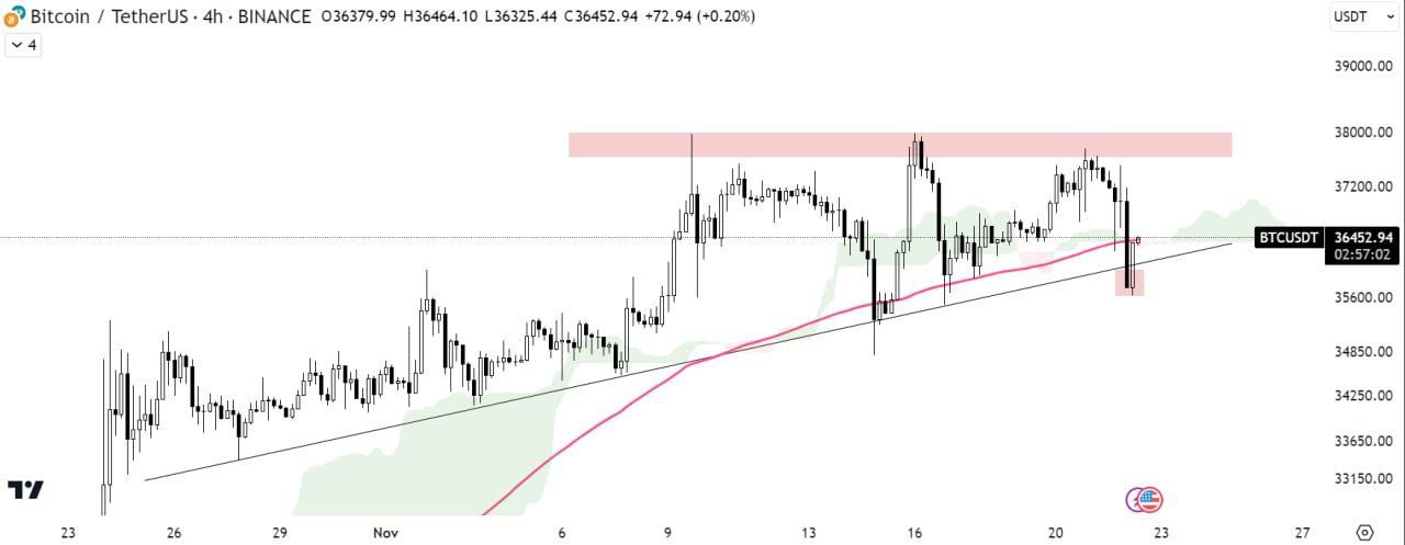 ⭐️ Right Now price is consolidating in a Support & Resistance Range between $35500 - $38000 Price Levels .