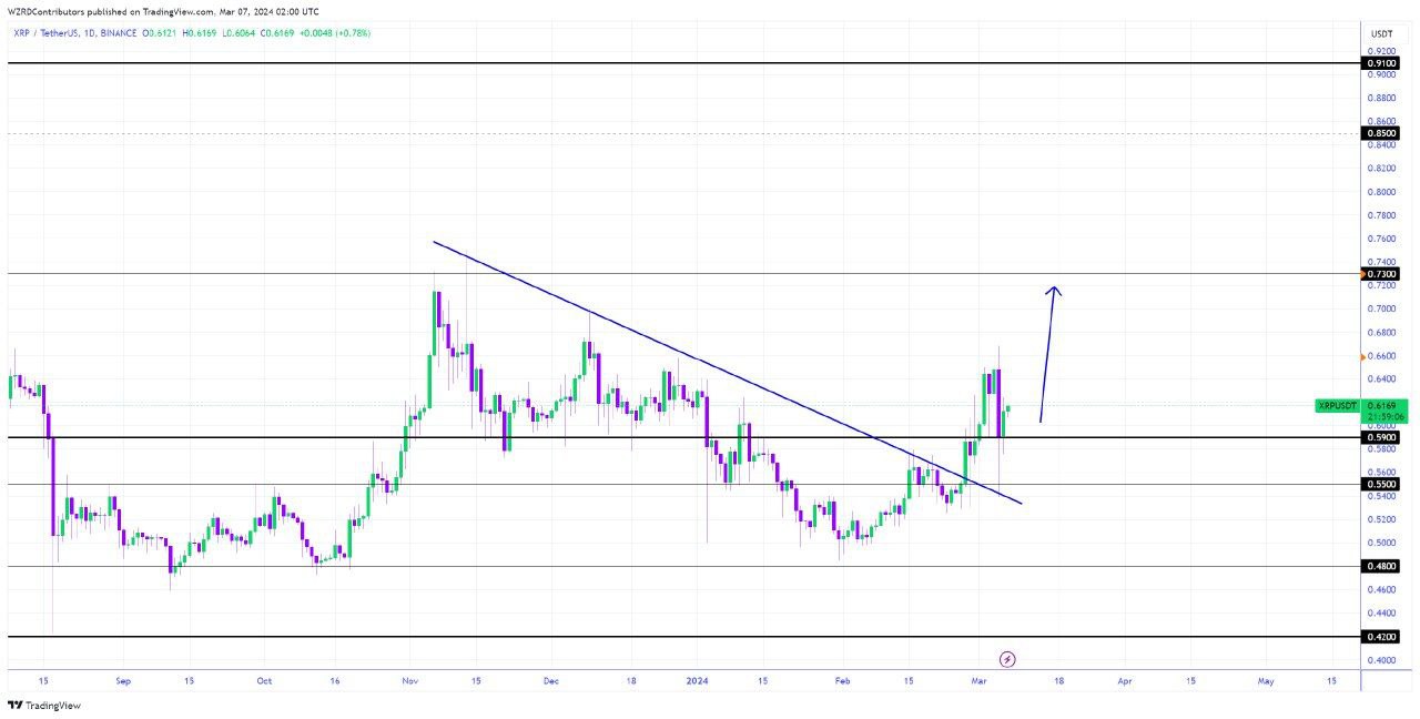$XRP closed slightly bullish although it’s looking like an inside bar due to the big bearish candle we got yesterday from Bitcoin’s flash crash. I expect more bullish sentiment from here in XRP tomorrow.