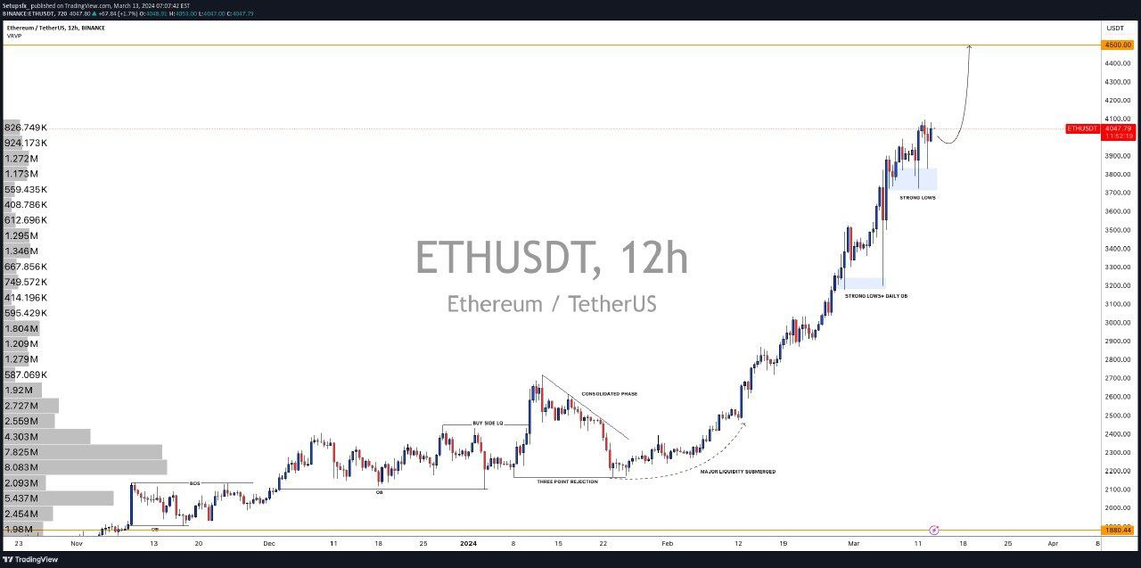 We expect ETH to reach a new record high of $4500-$5000 in the near future after showing strong bullish behavior and rejecting strong wicks in the last two days. Our team suggests using accurate risk management before any major correction occurs.