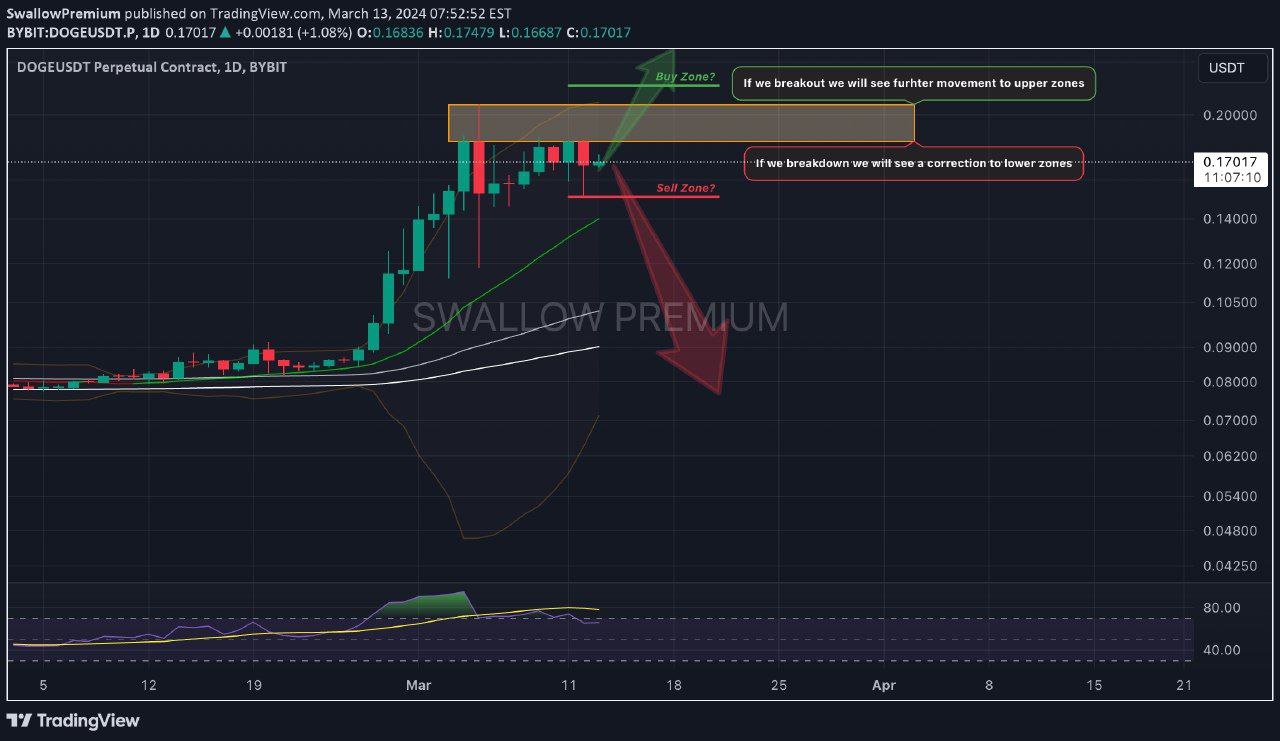 After a strong push, Dogecoin is currently experiencing sideways movement. Our team is waiting for two potential scenarios: resistance holds leading to further downward movement or breakout for continued growth!