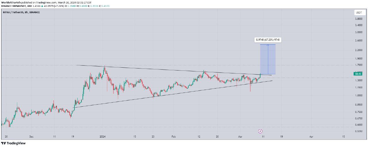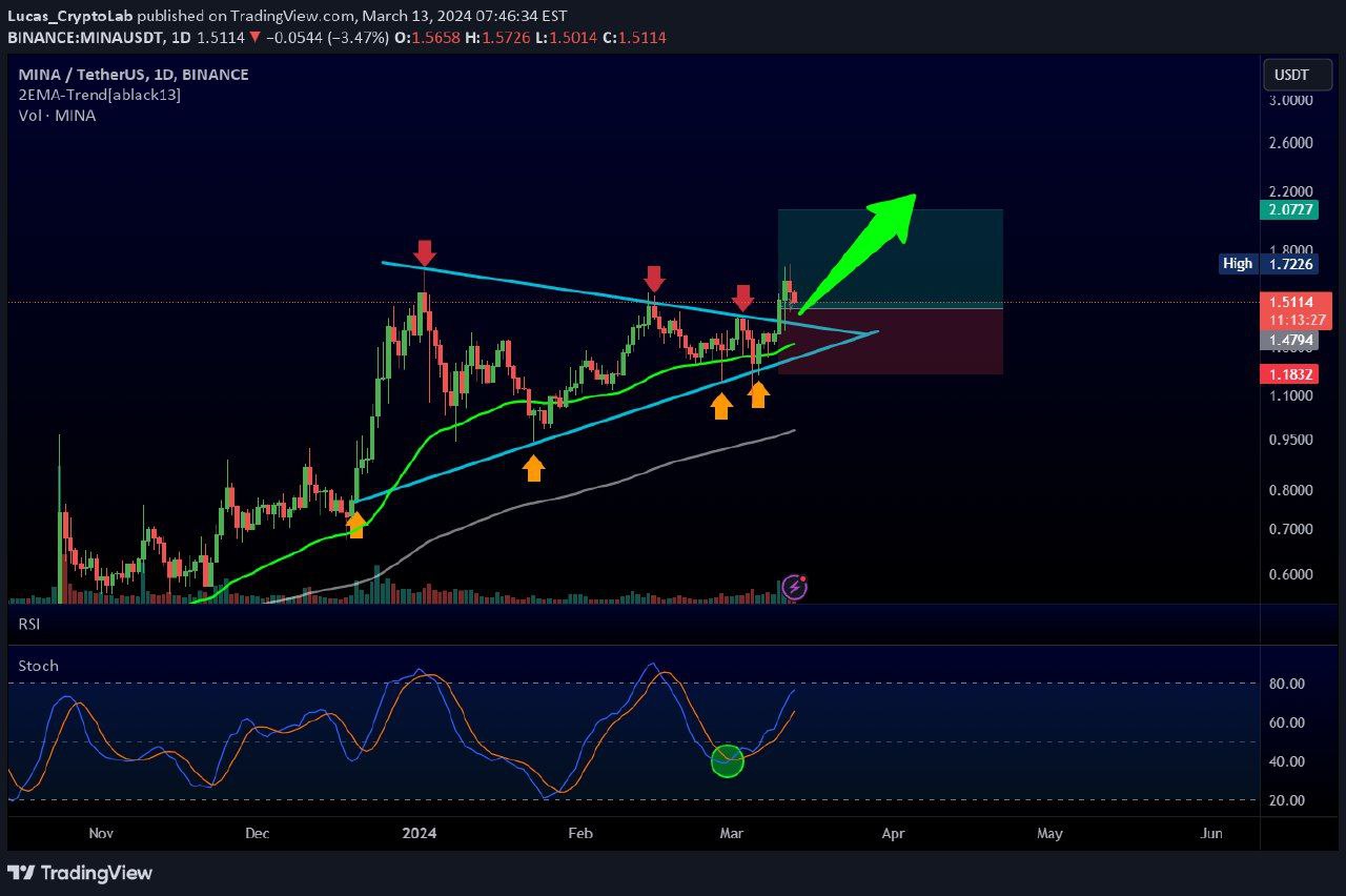 We anticipate a bullish trend for crypto, making it easier to enter with the trend. MINA is showing signs of another breakout from a bullish pennant, which may lead to a 50% rally in the coming days. Trust in the uptrend and potential profits.