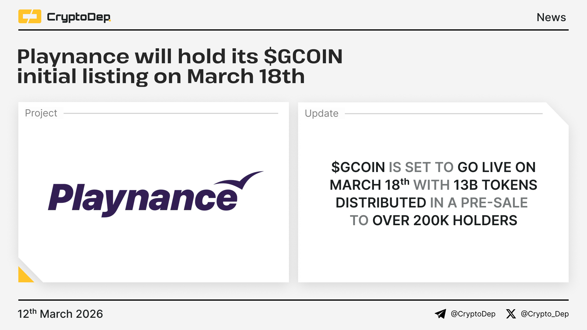 With TGE planned for March 18th, $GCOIN functions as the unified economic layer of the Playnance ecosystem, facilitating gameplay activity, predictions, settlements, rewards, and other forms of participation across the network’s platforms.
