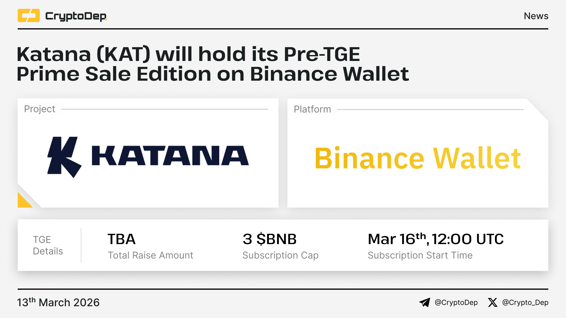 Katana (KAT) will hold its Pre-TGE Prime Sale Edition on Binance Wallet