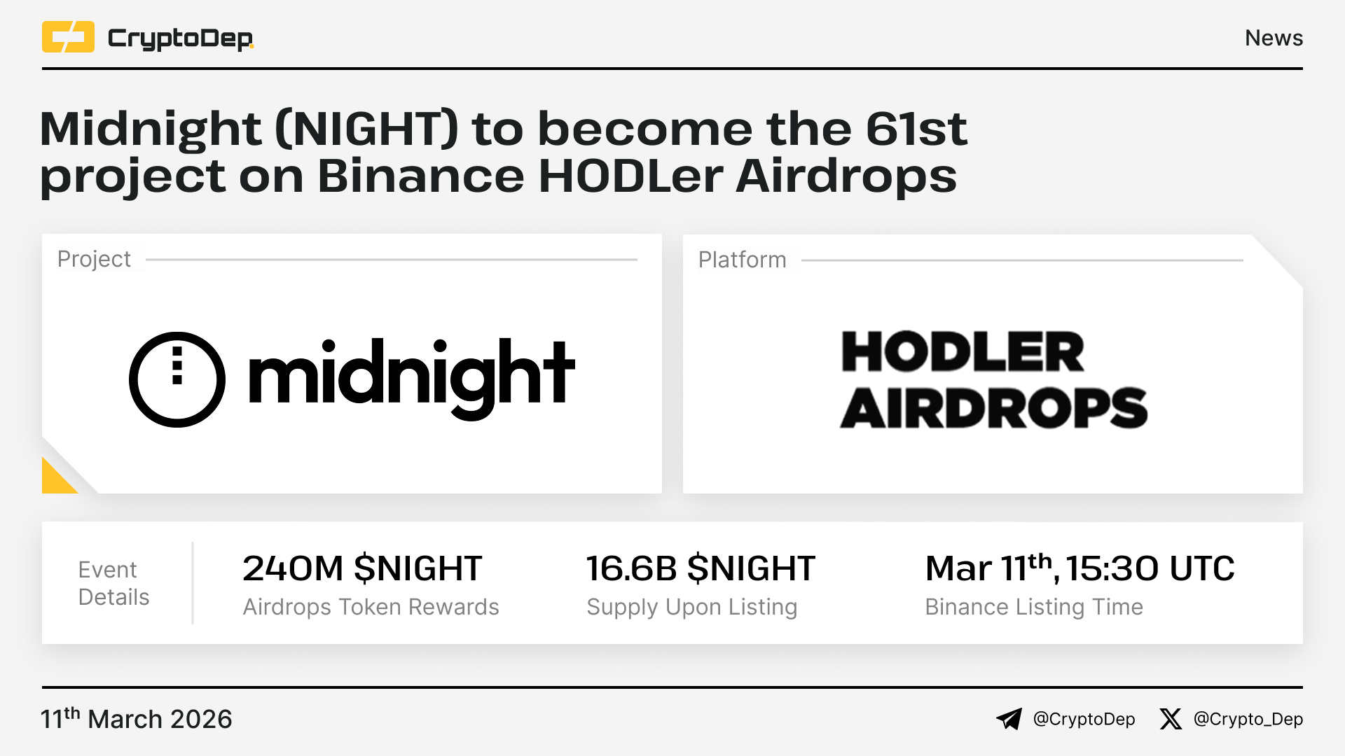 Midnight (NIGHT) to become the 61st project on Binance HODLer Airdrops