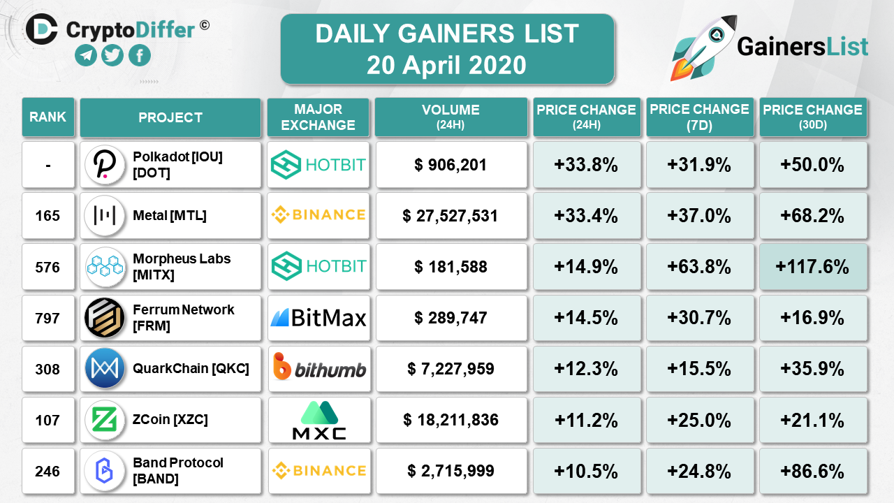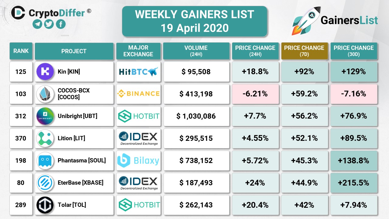 The best performers are BHEX Token +262.8%, Eterbase +209.6%, Probit Token +67.9%, BitMart Token +53.9% and Bilaxy Token +52.4%