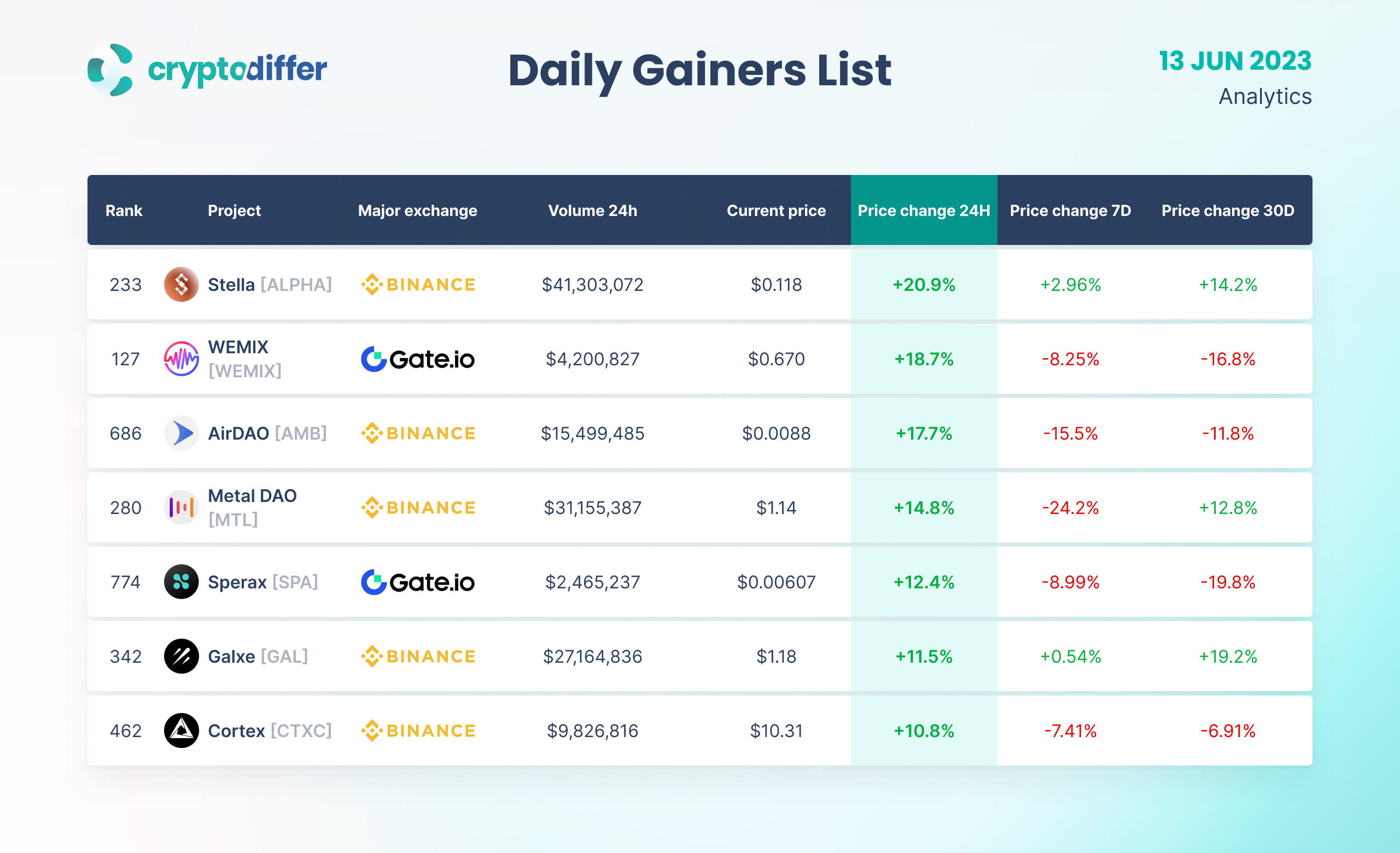 DAILY GAINERS LIST