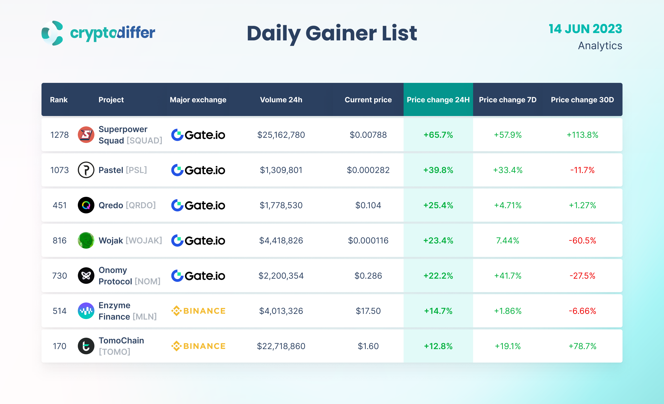 MONTHLY GAINERS LIST