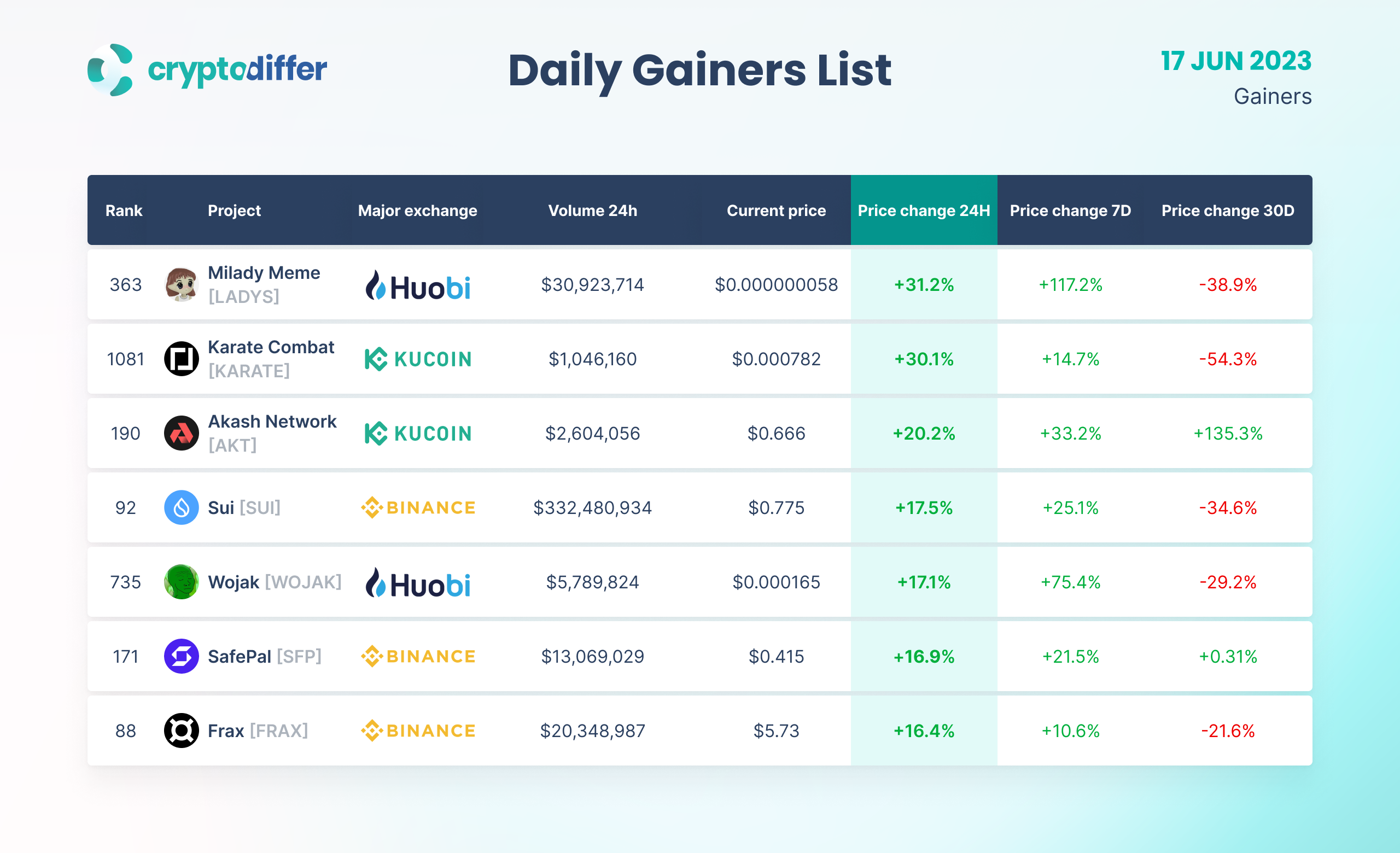 DAILY GAINERS LIST