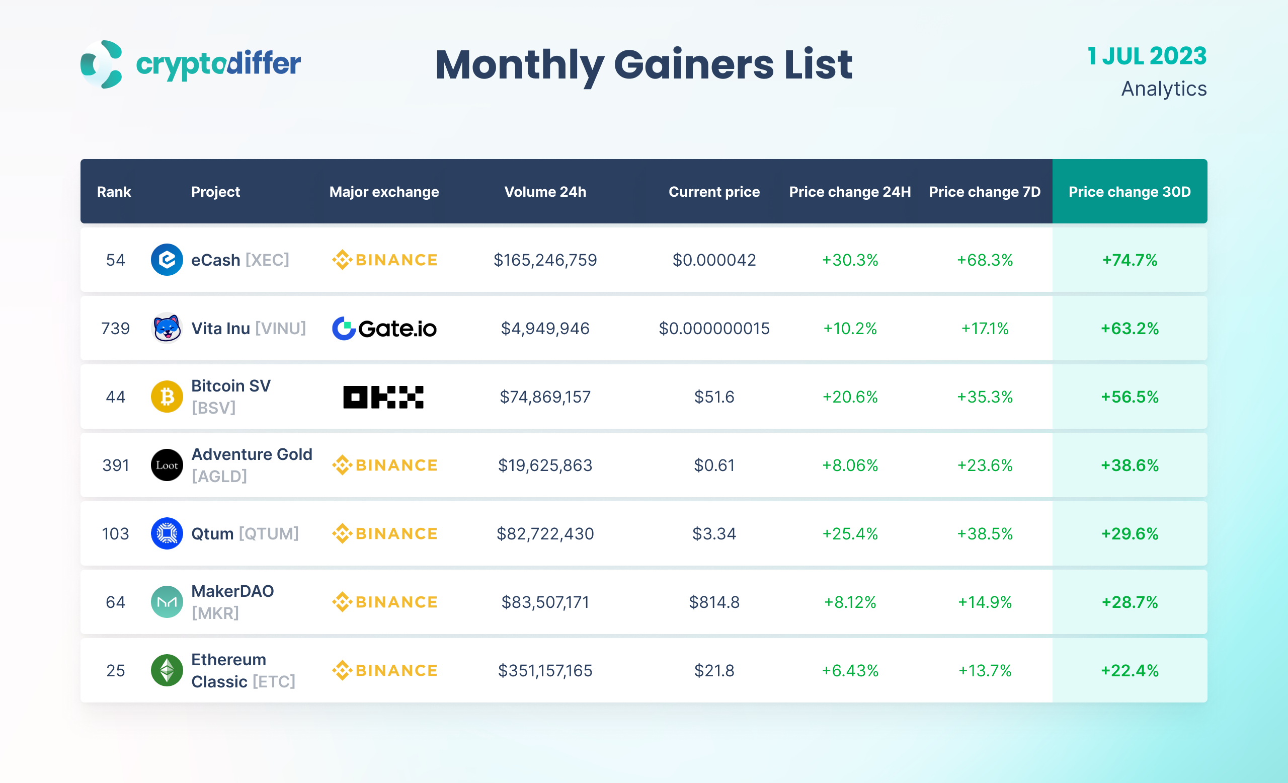 MONTHLY GAINERS LIST