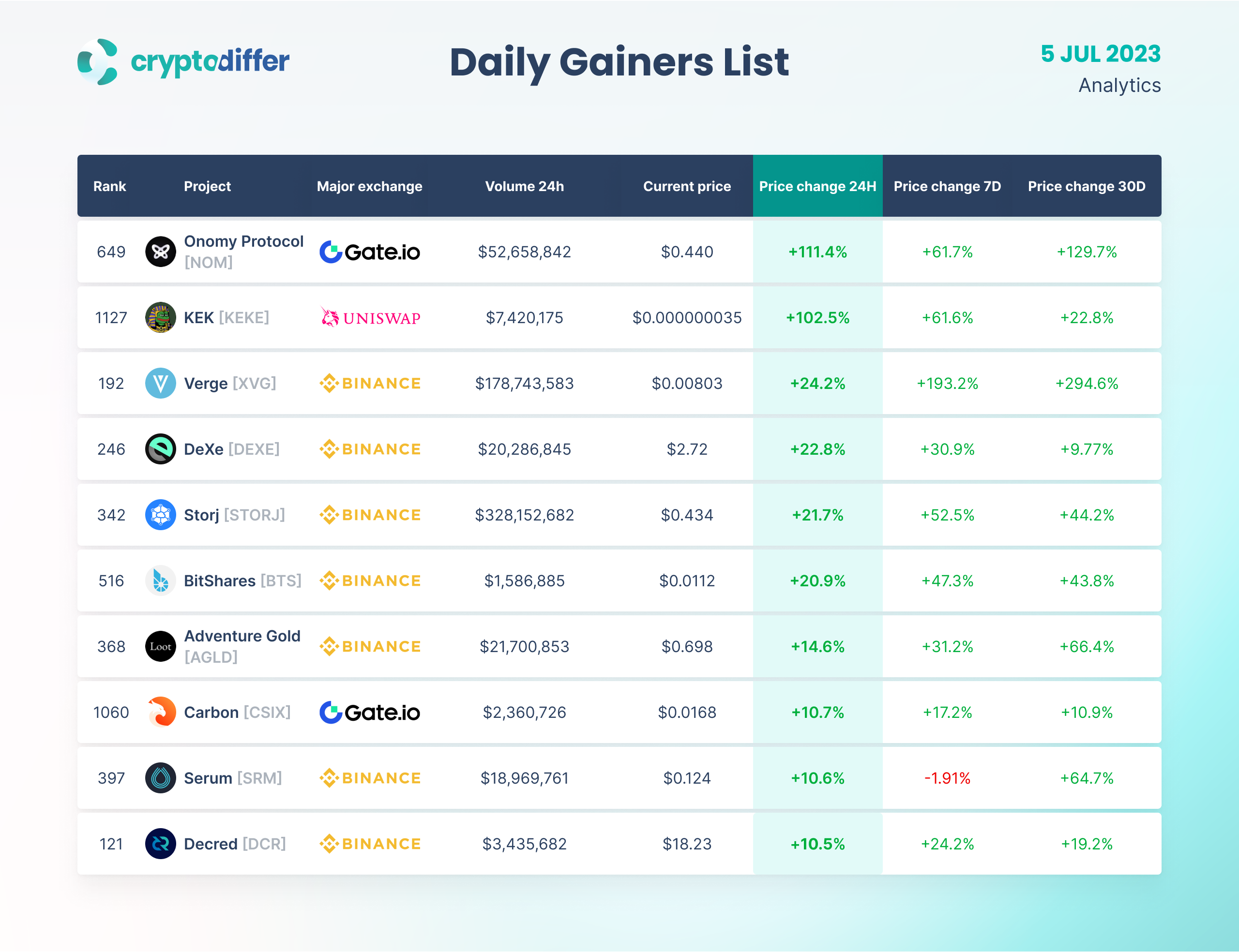 DAILY GAINERS LIST