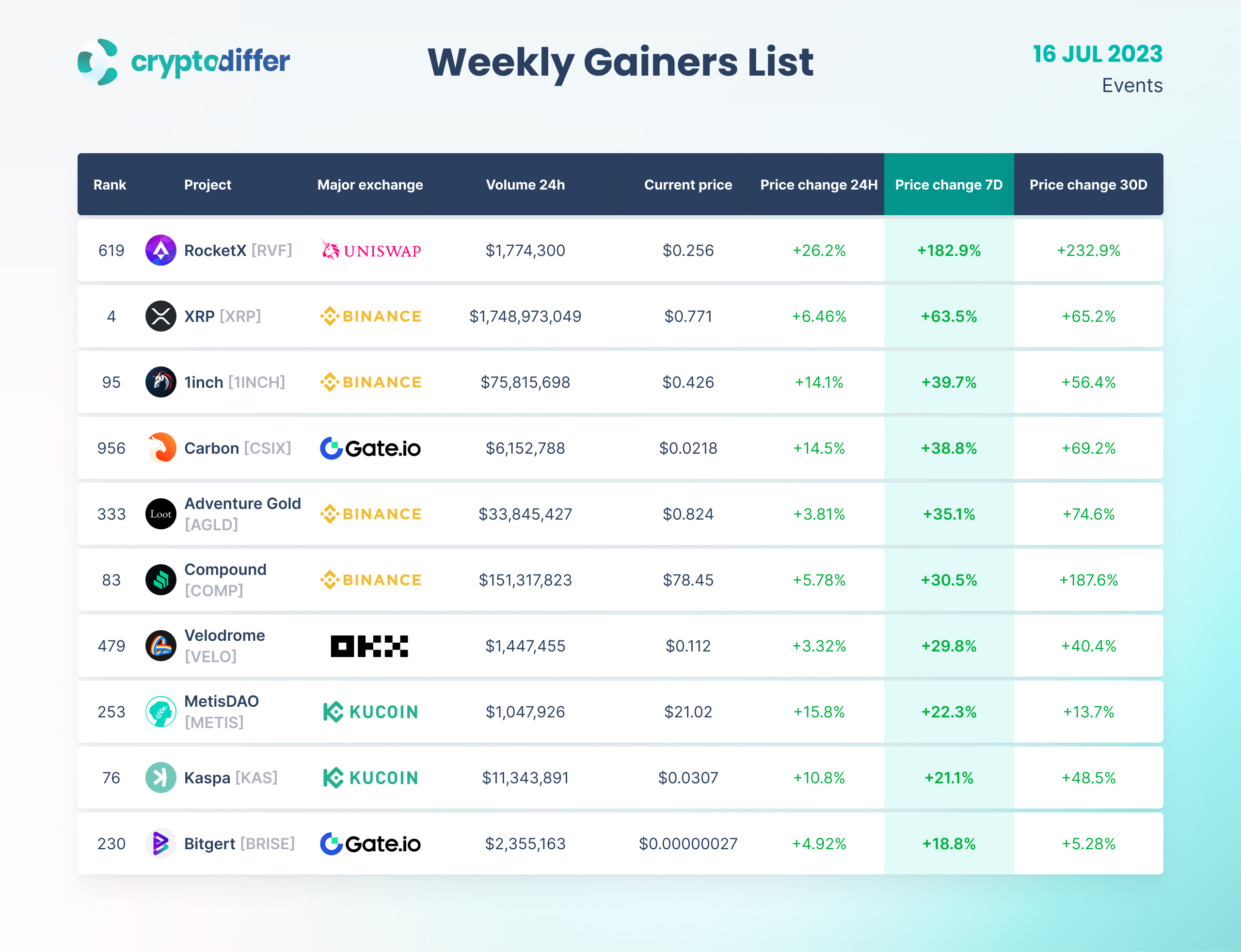 WEEKLY GAINERS LIST