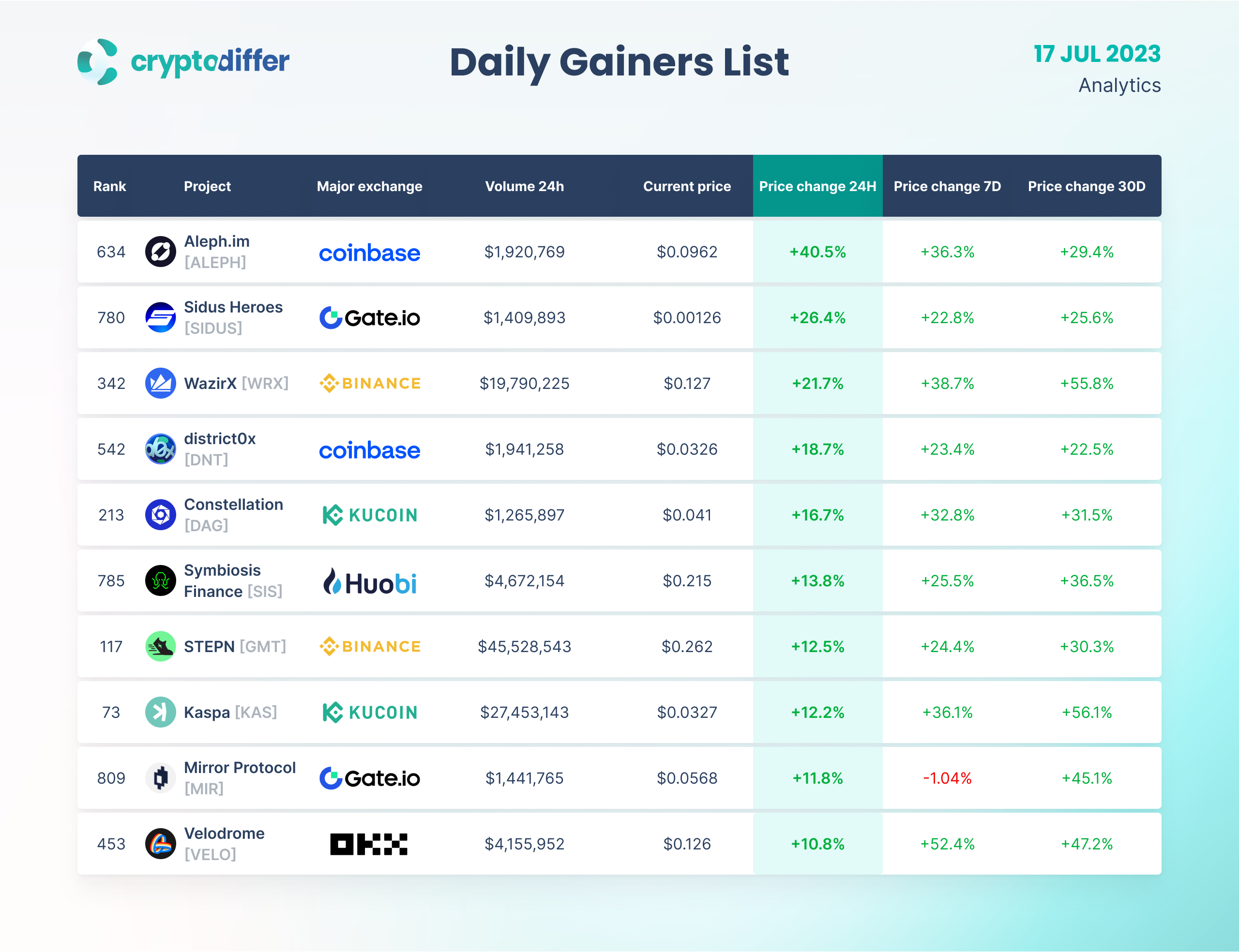 DAILY GAINERS LIST