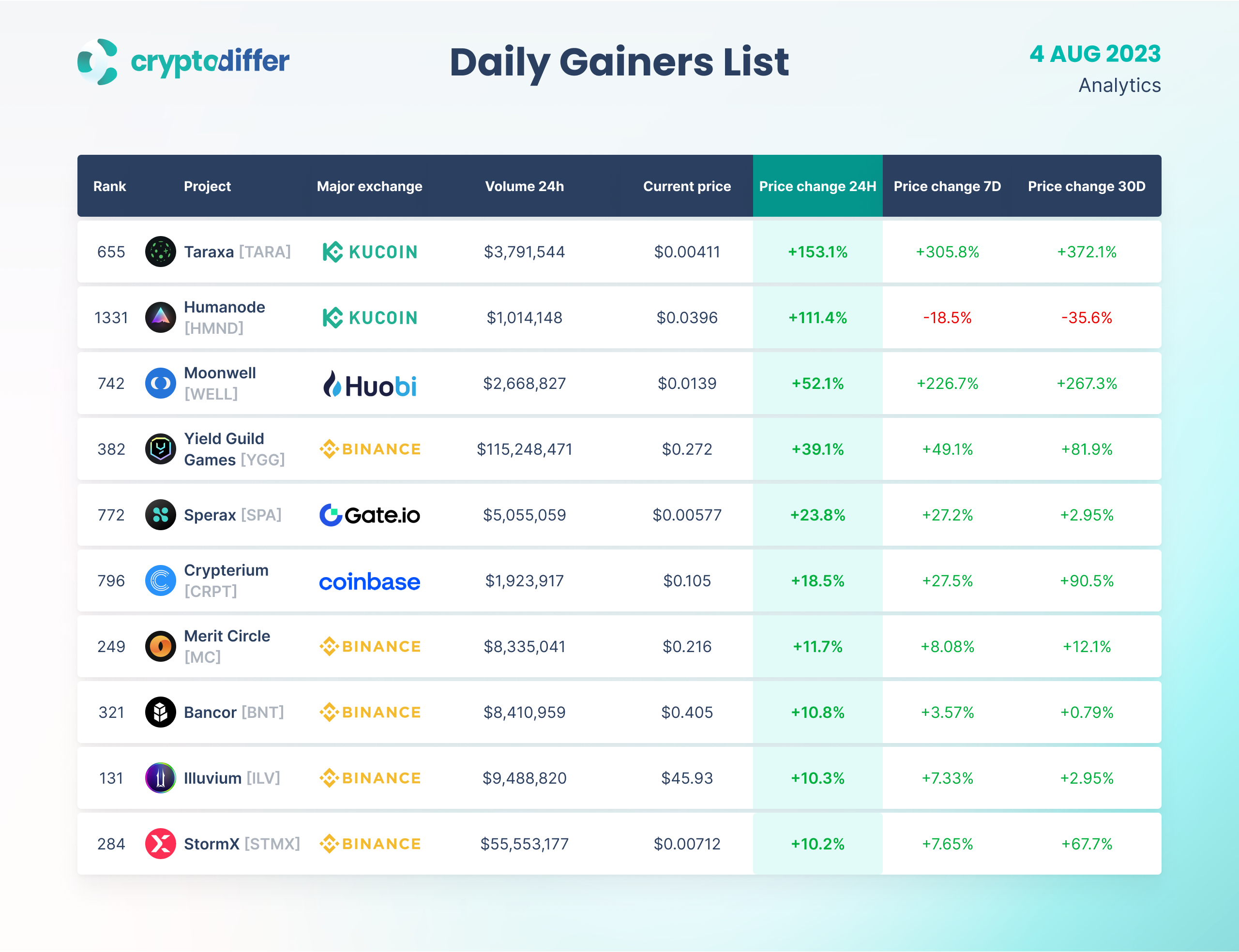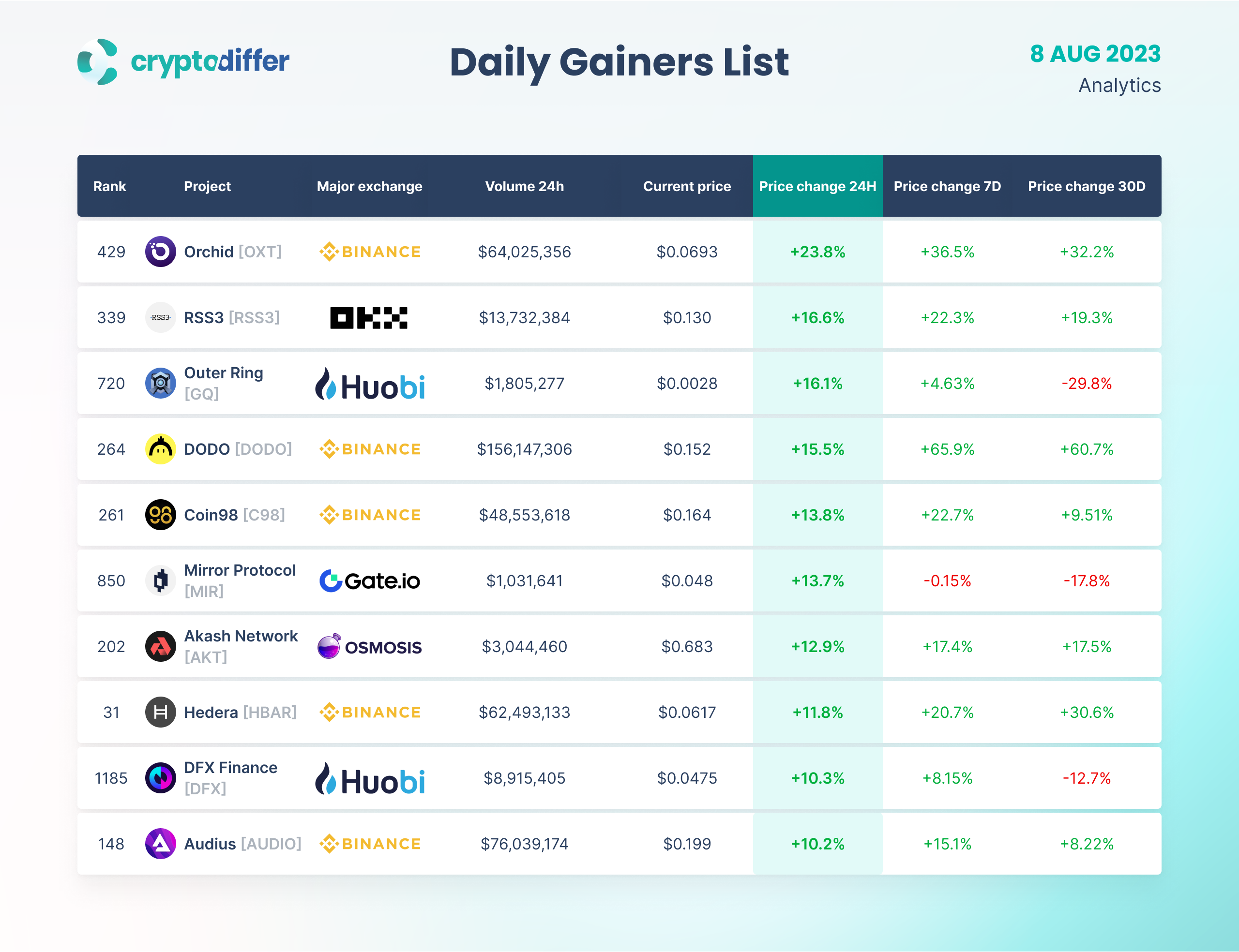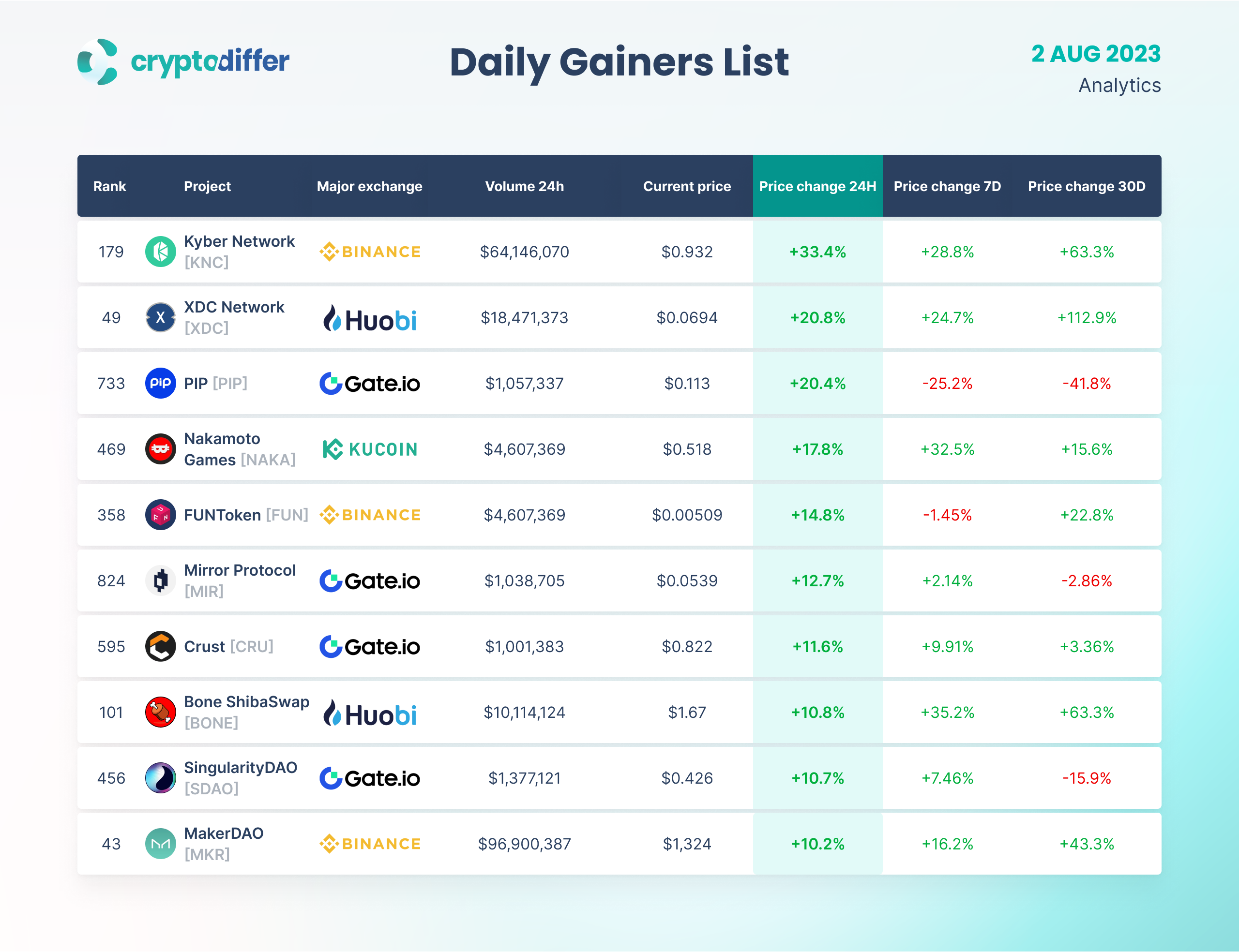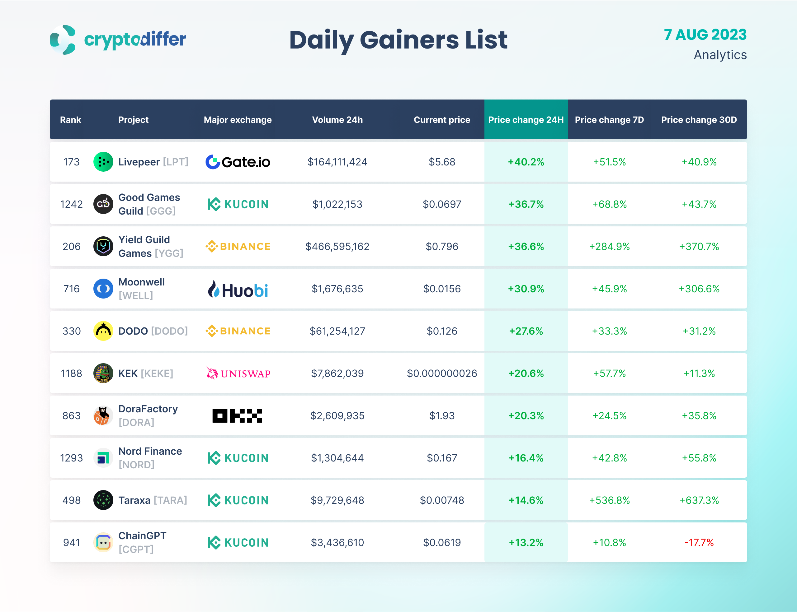 DAILY GAINERS LIST