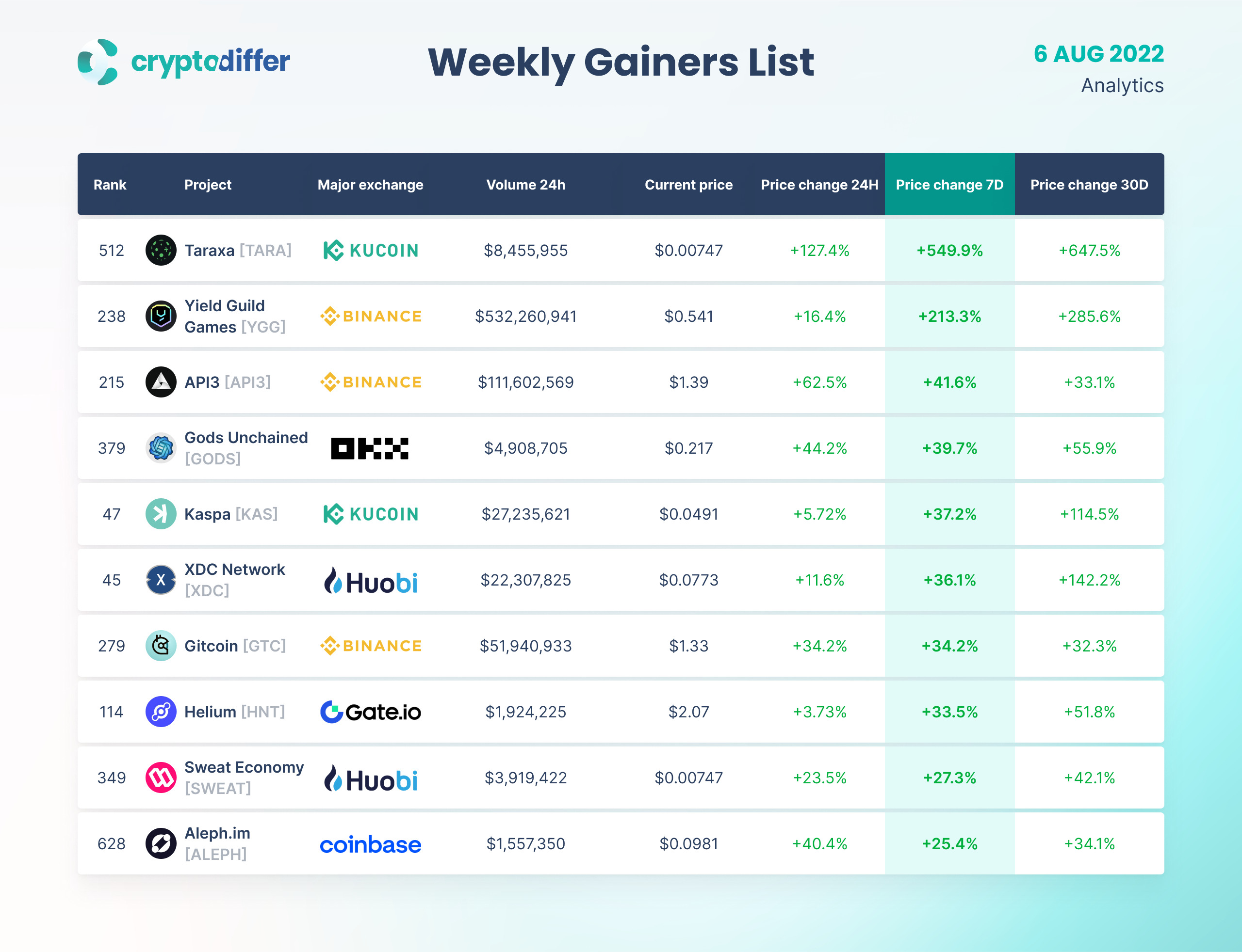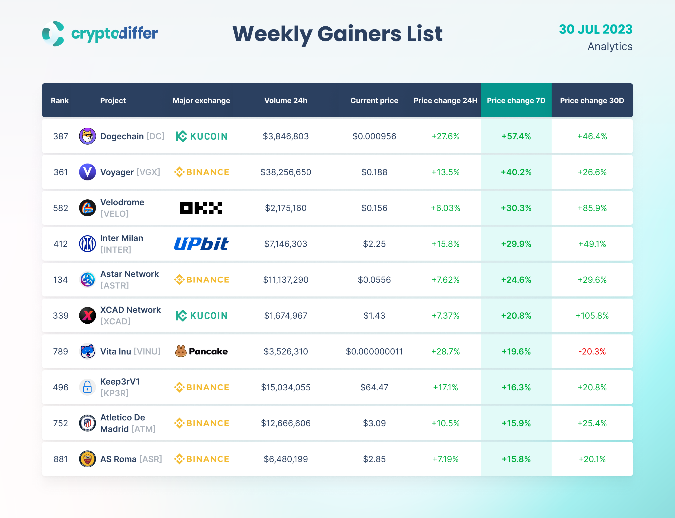 WEEKLY GAINERS LIST