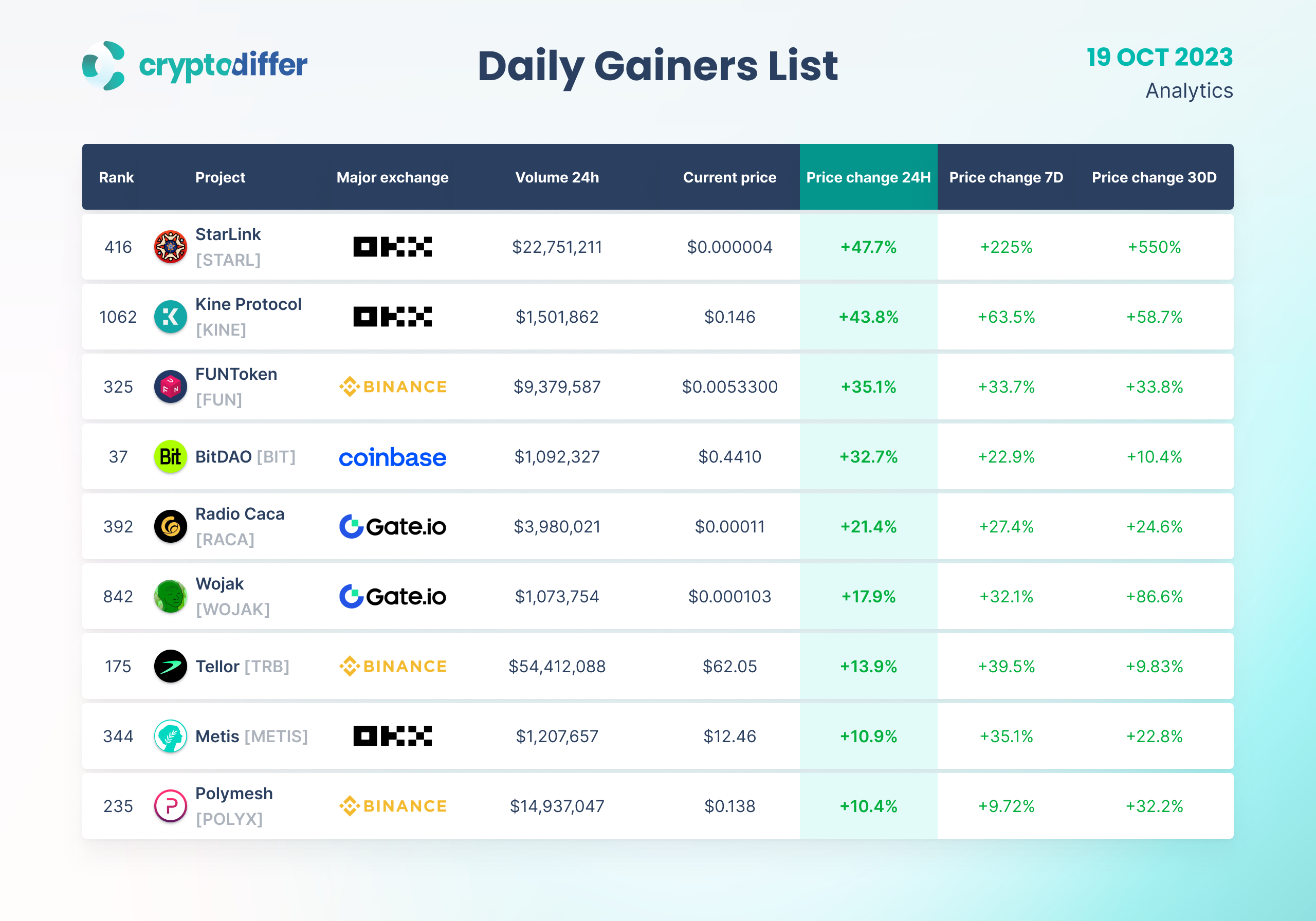 DAILY GAINERS LIST