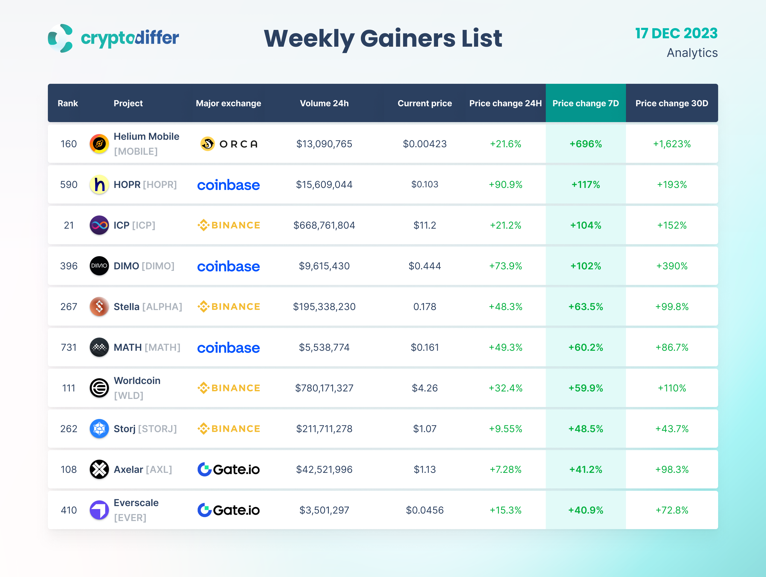 WEEKLY GAINERS LIST