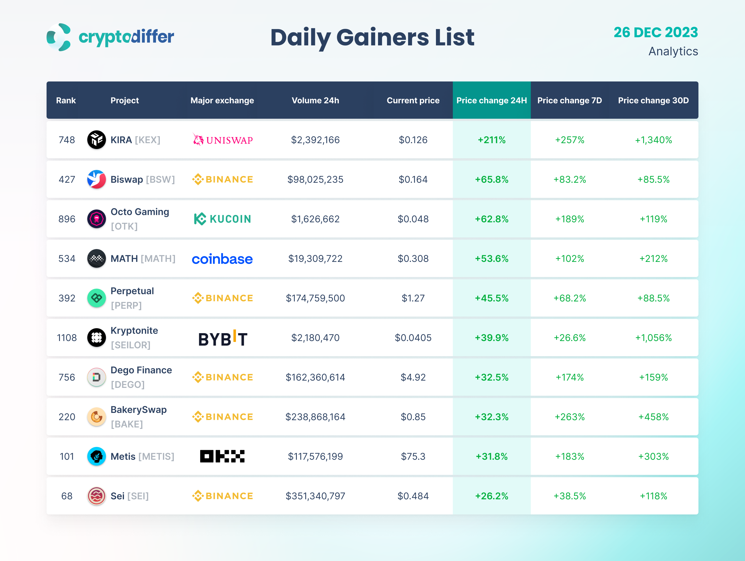 DAILY GAINERS LIST
