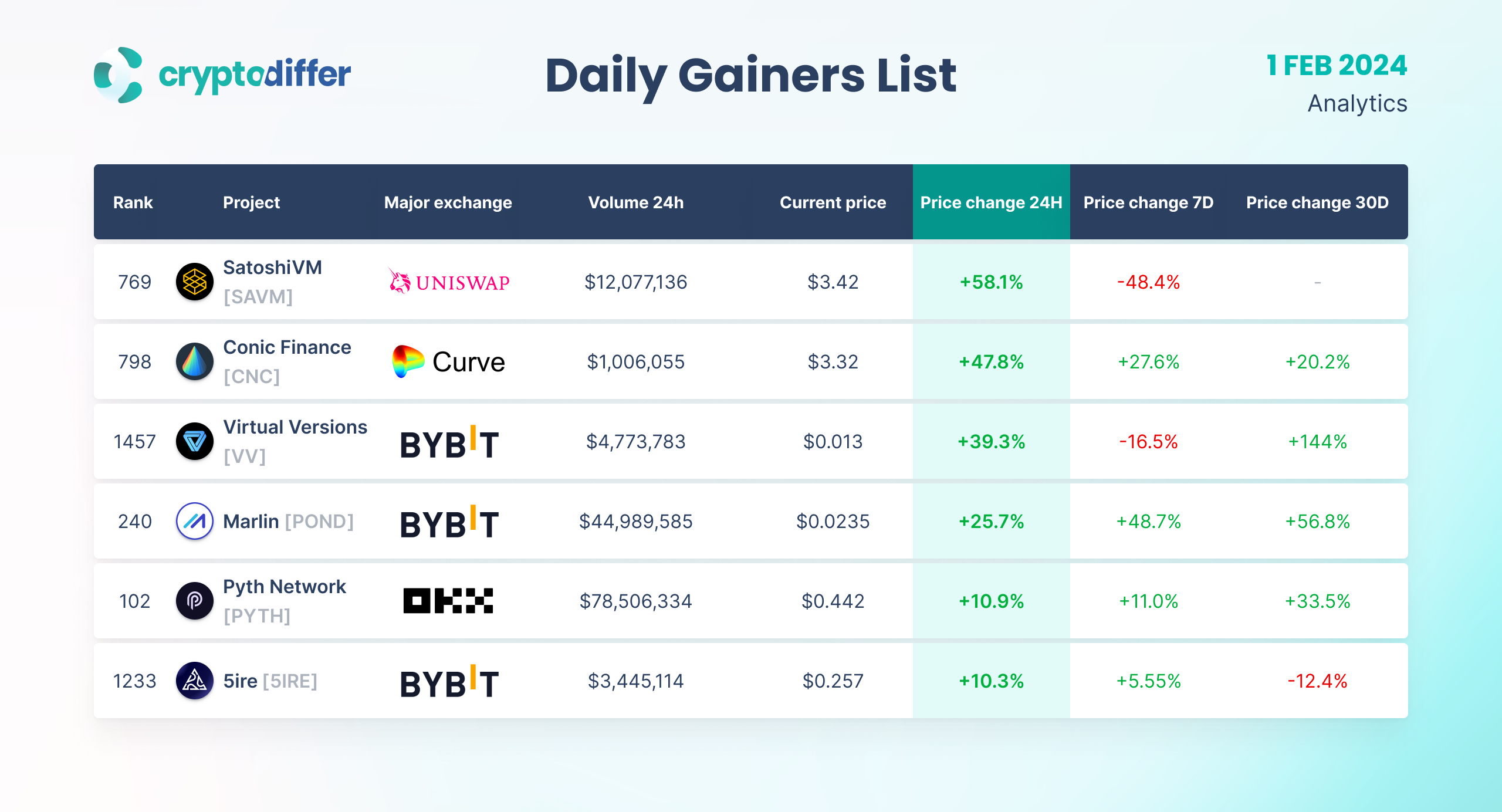 DAILY GAINERS LIST