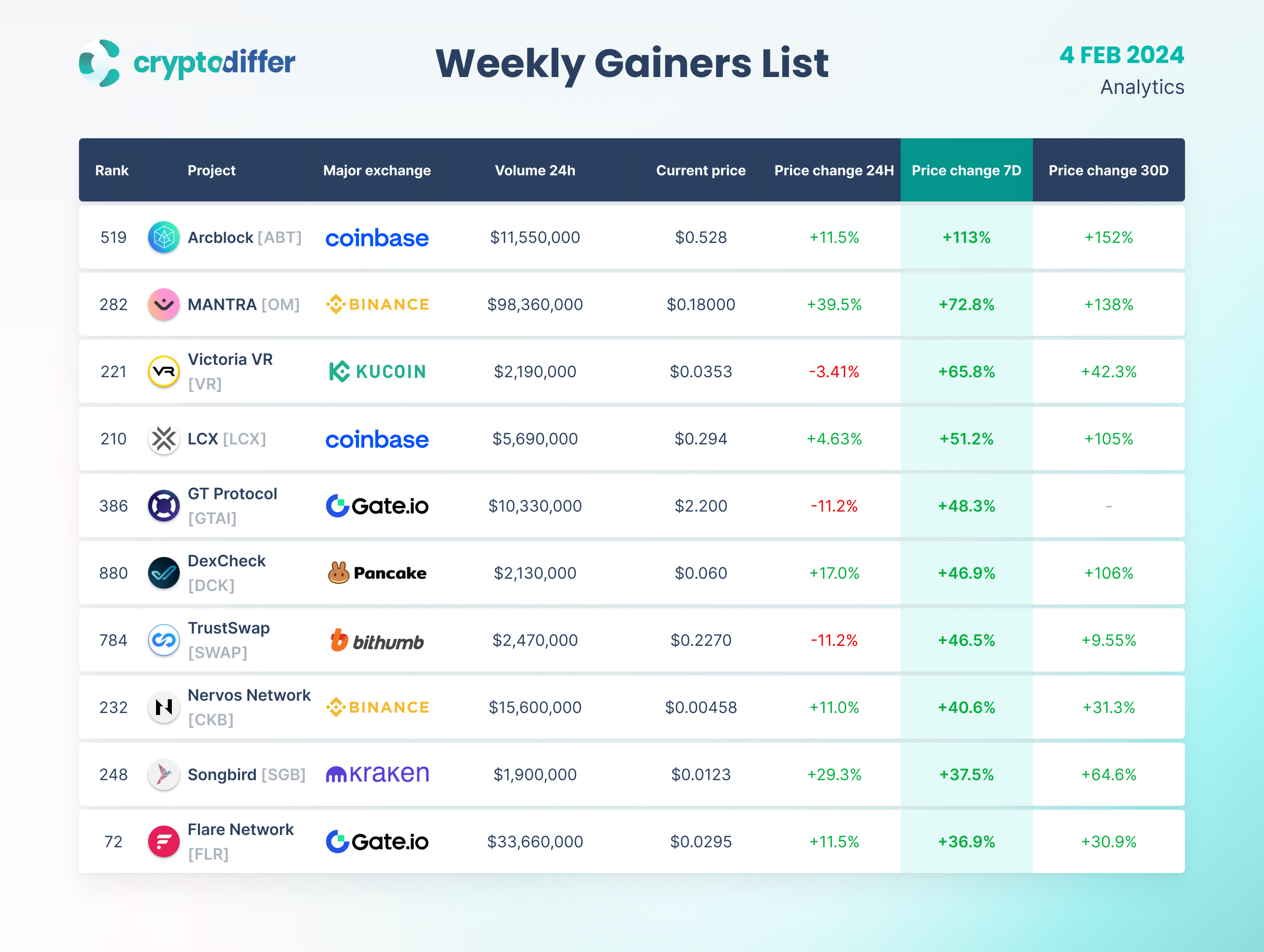 WEEKLY GAINERS LIST