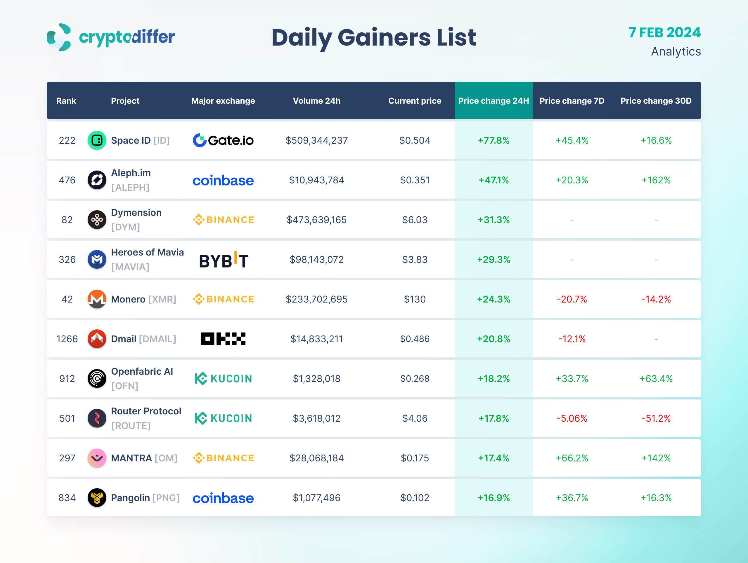 DAILY GAINERS LIST