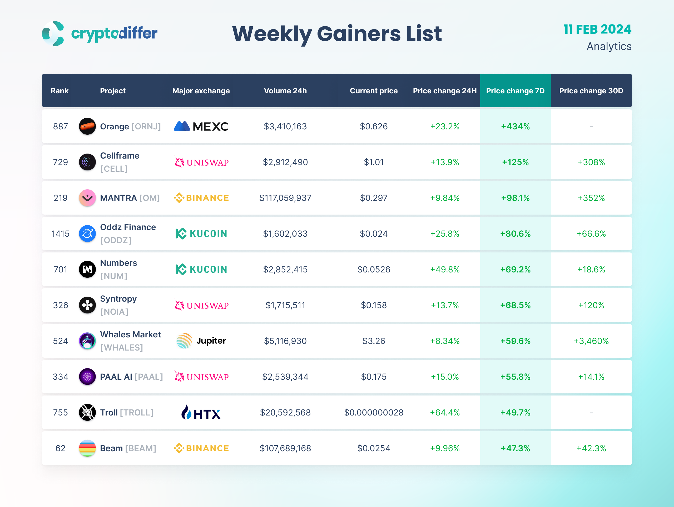 WEEKLY GAINERS LIST