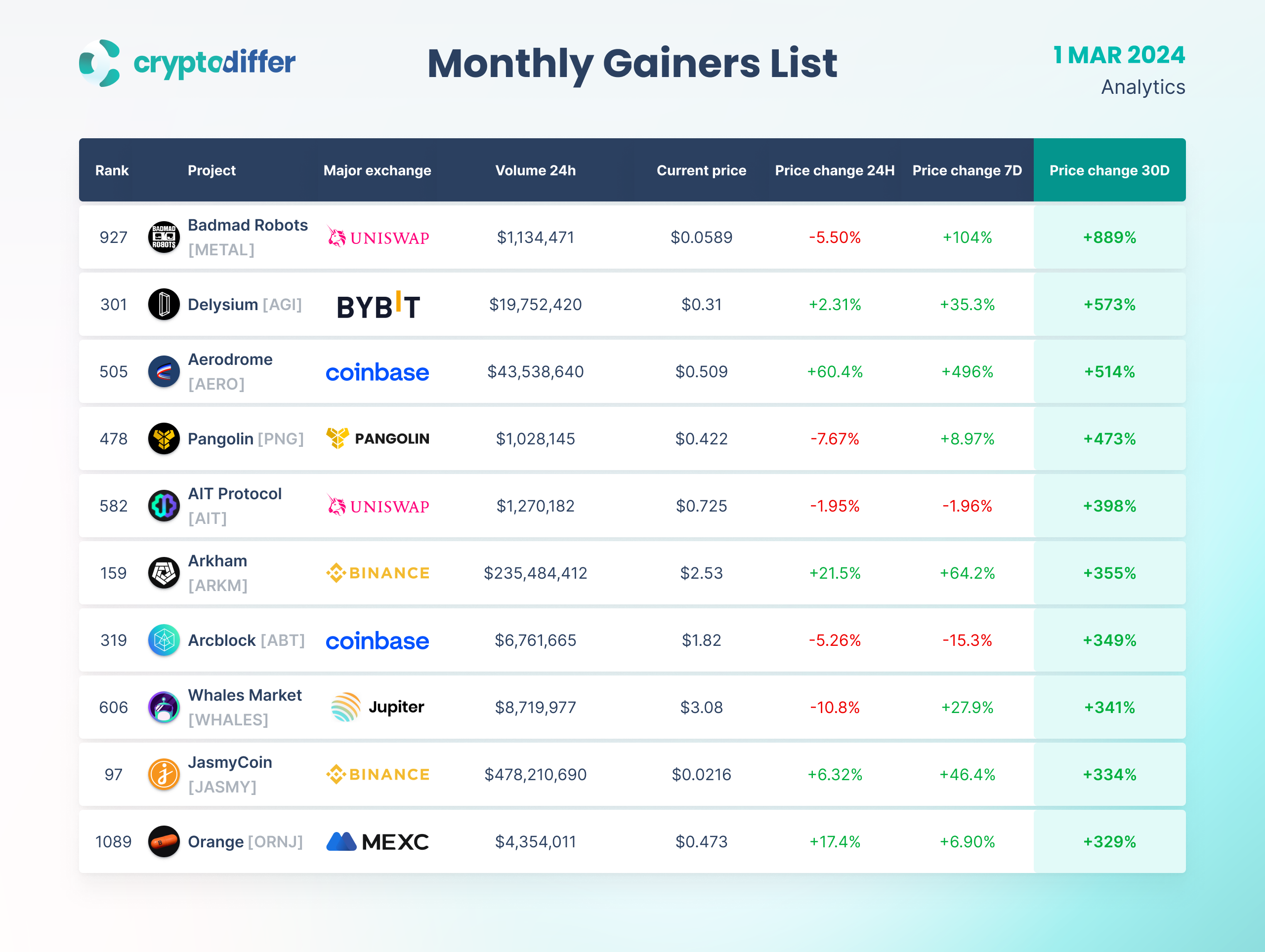 MONTHLY GAINERS LIST