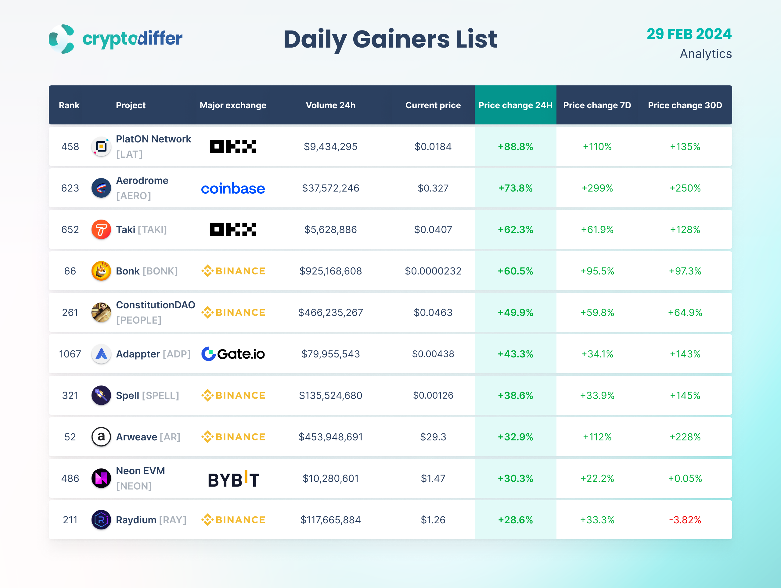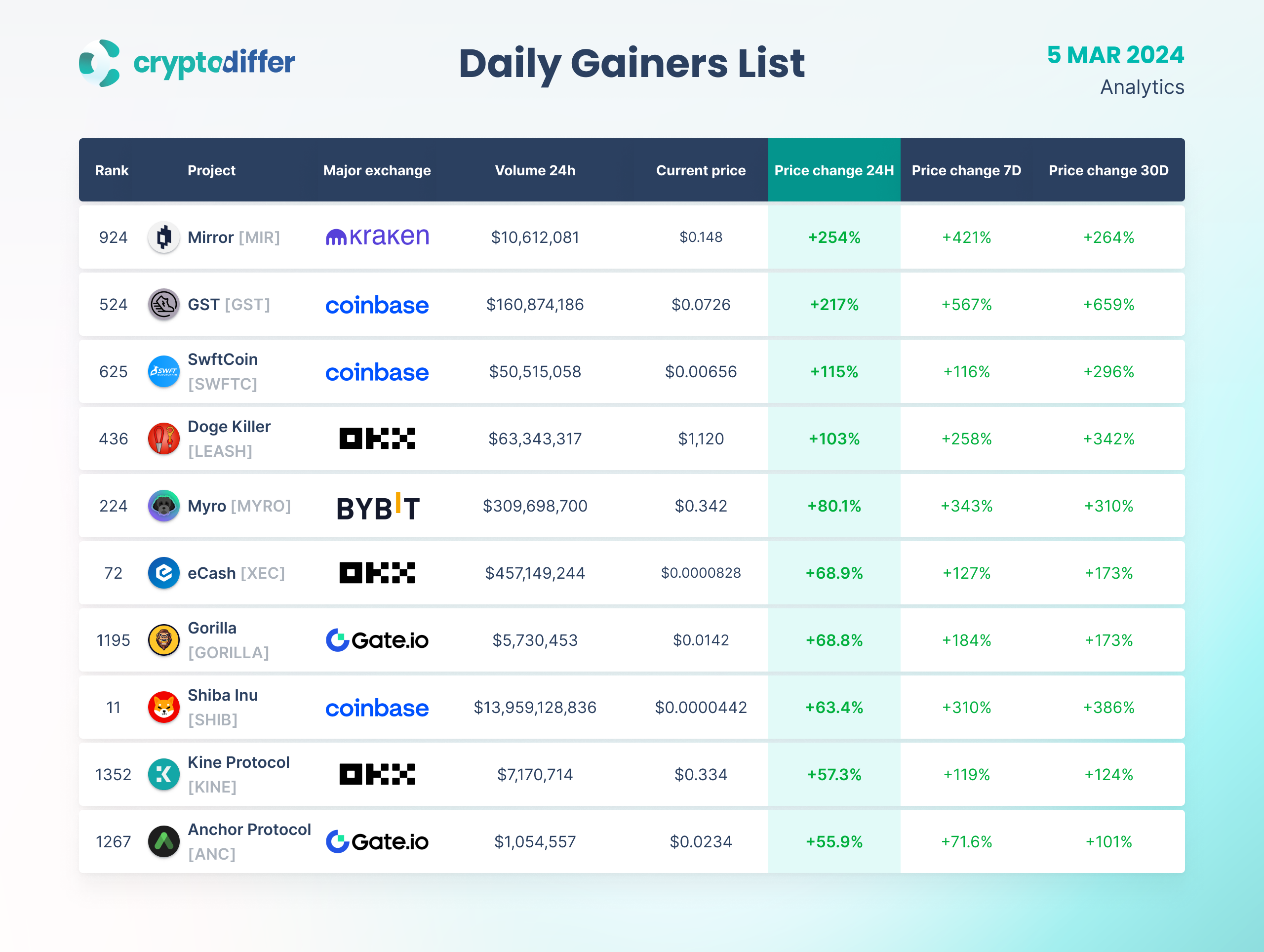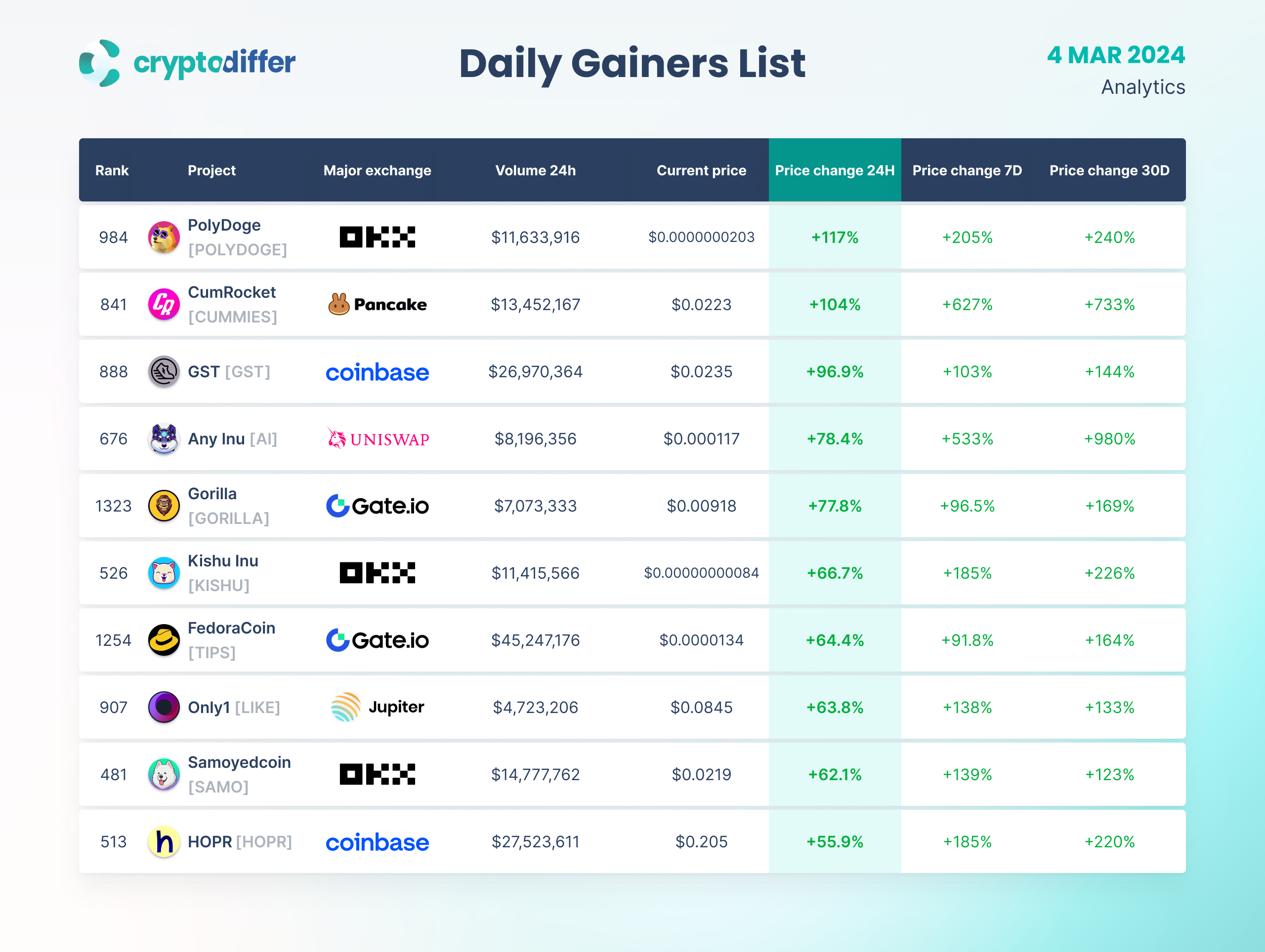 DAILY GAINERS LIST